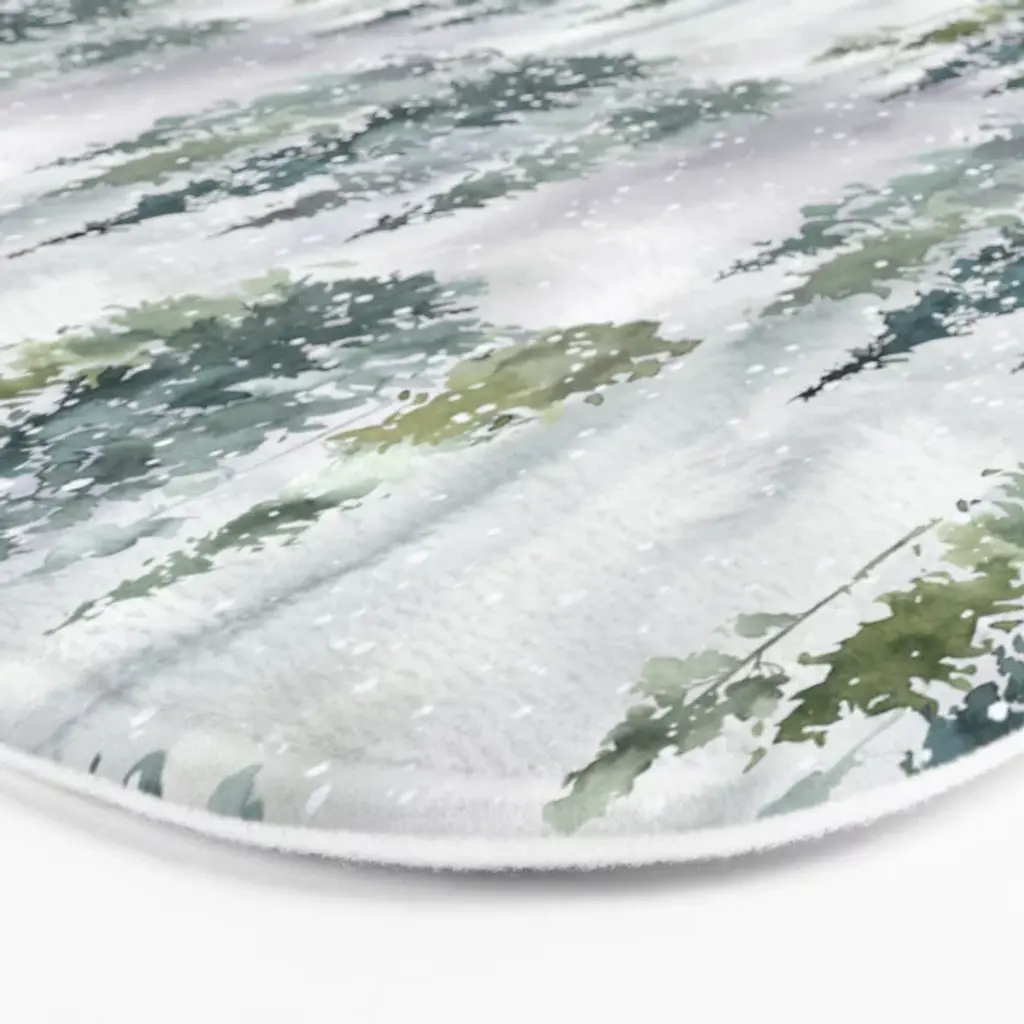 Watercolor Forest Green Snow Christmas Pine Tree Bath Mat
