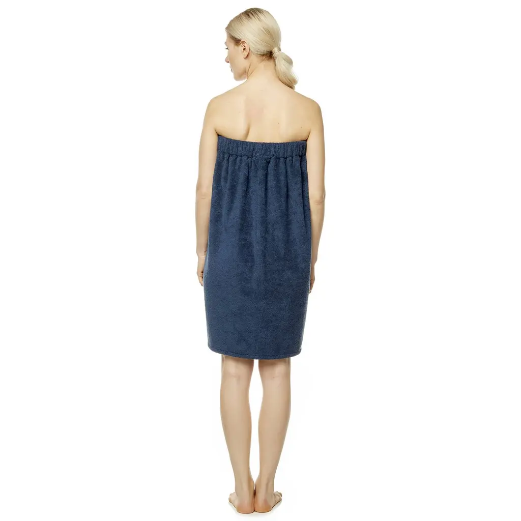 Women's Turkish Terry Cotton Bath And Shower Towel Wrap - Large/x-Large - Navy Blue