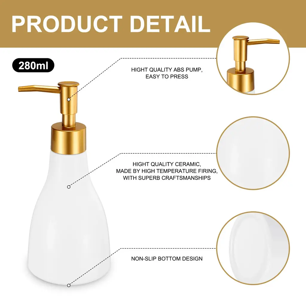 Description:Widely used: Use the dispenser for hand soap, dish soap, lotion, shampoo, body wash, massage oils, food ingredients, and much more, can be applied to various places, including bathrooms, kitchens, living rooms, restaurants, and more.Elegant Decoration: This hand soap dish soap dispenser has a high-scale design that perfectly matches various room decorations and improves the sense of luxury of your home.Nice Gift: The lotion dispenser can be a wonderful gift for your friends, and family, which will bring convenience to them.Specification:Material: Pottery ClaySize: Height IN DiameterCompatibility: Package Includes:Hand and Dish Soap Dispenser