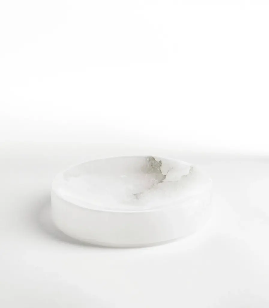 Crafted from luxuriant alabaster, the naturally marbled veining of each distinct collection piece brings artful elegance to the bathroom.