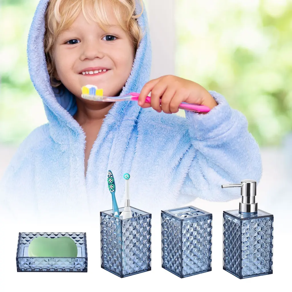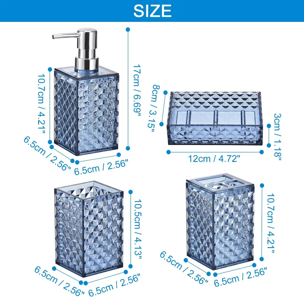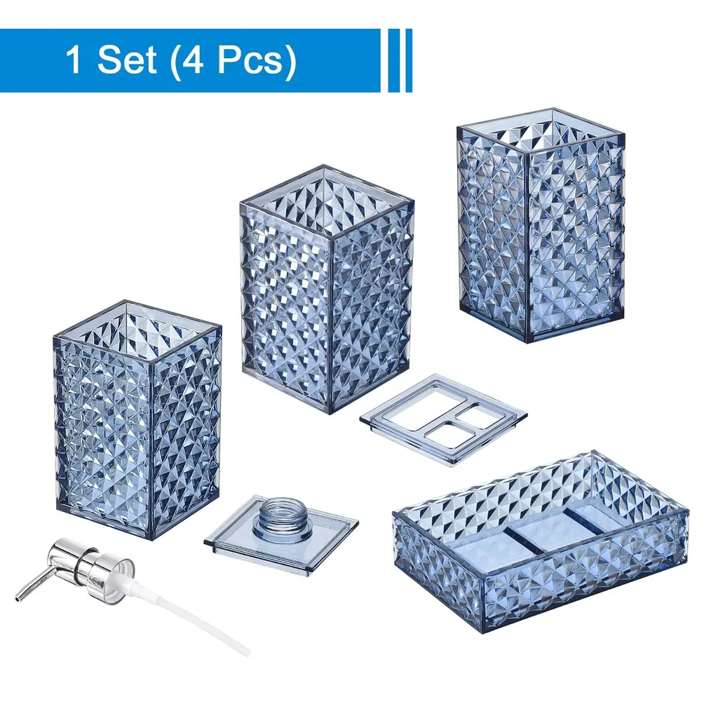 Advantage:The bathroom counter set is made of PS. Polystyrene is lightweight, with high impact strength and stability.Decorate your bathroom, this kit can even bring a unique style to your bathroom, making the bathroom tidy and neat. The bathroom essential organizer set helps you to properly decorate your restroom and save valuable space.The bathroom set, includes a soap dish, toothbrush holder, rinse cup, soap dispenser.Great for home, bathroom, dormitory, hotel, apartment, washing room, basement, RV and etc.Specification:Item Type: Bathroom SetMaterial: PSColor: BlueWeight: 585 gramPackage Included: 1 Lotion Dispenser, 1 Toothbrush Holder, 1 Toothbrush Cup, 1 Soap Dish,Note:In manual measurement, there will be a 1-2mm error, depending on the actual size.·Due to differences in some monitors and lighting reasons, there may be a slight color difference between pictures and items.