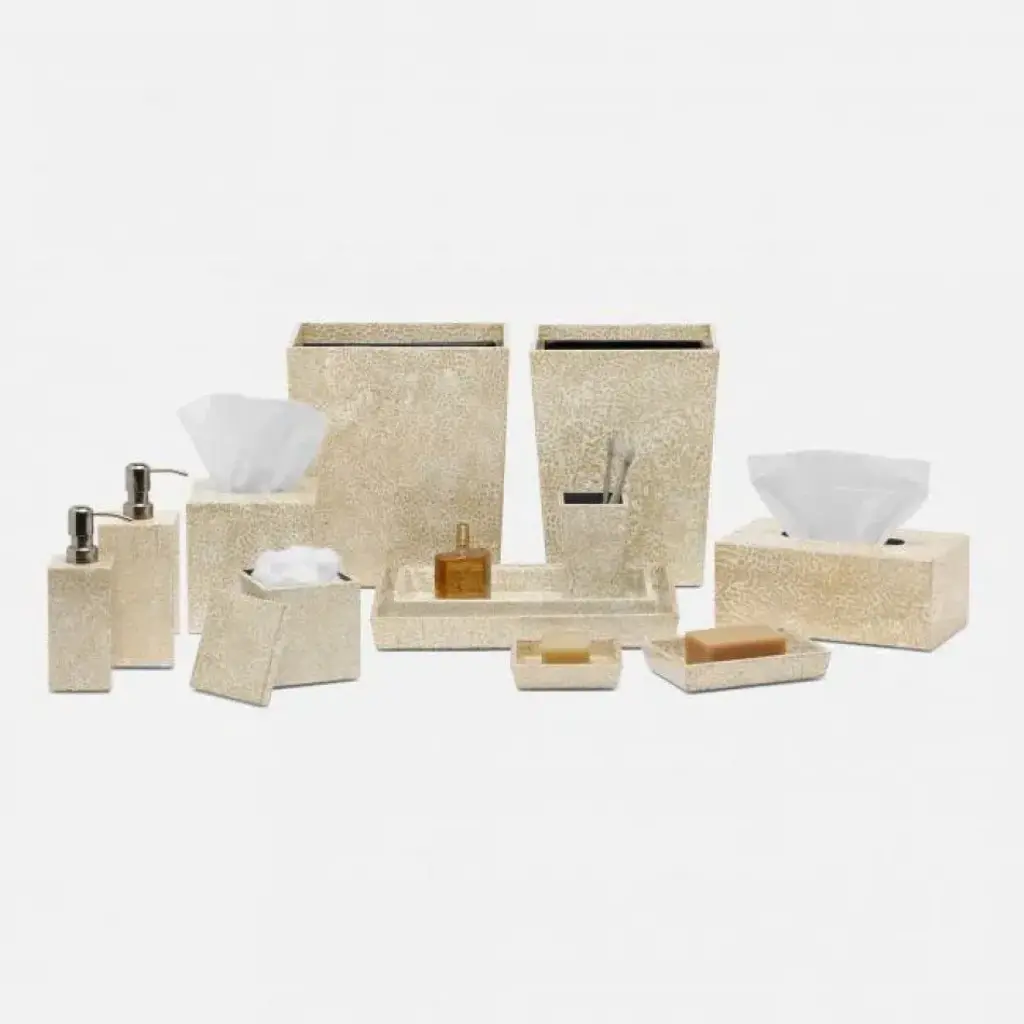 An elegant mosaic of lacquered, cracked eggshell. The designers at Pigeon & Poodle believe the details of a home are just as important as the furniture. A gorgeous toothbrush holder or handcrafted canister can elevate an entire bath, the perfect frame can heighten the feel of a whole space, and a good-looking storage basket can be your look’s missing link. With thoughtful design and top-notch craftsmanship, Pigeon & Poodle create home accessories with the care and attention typically reserved for larger pieces of décor.
