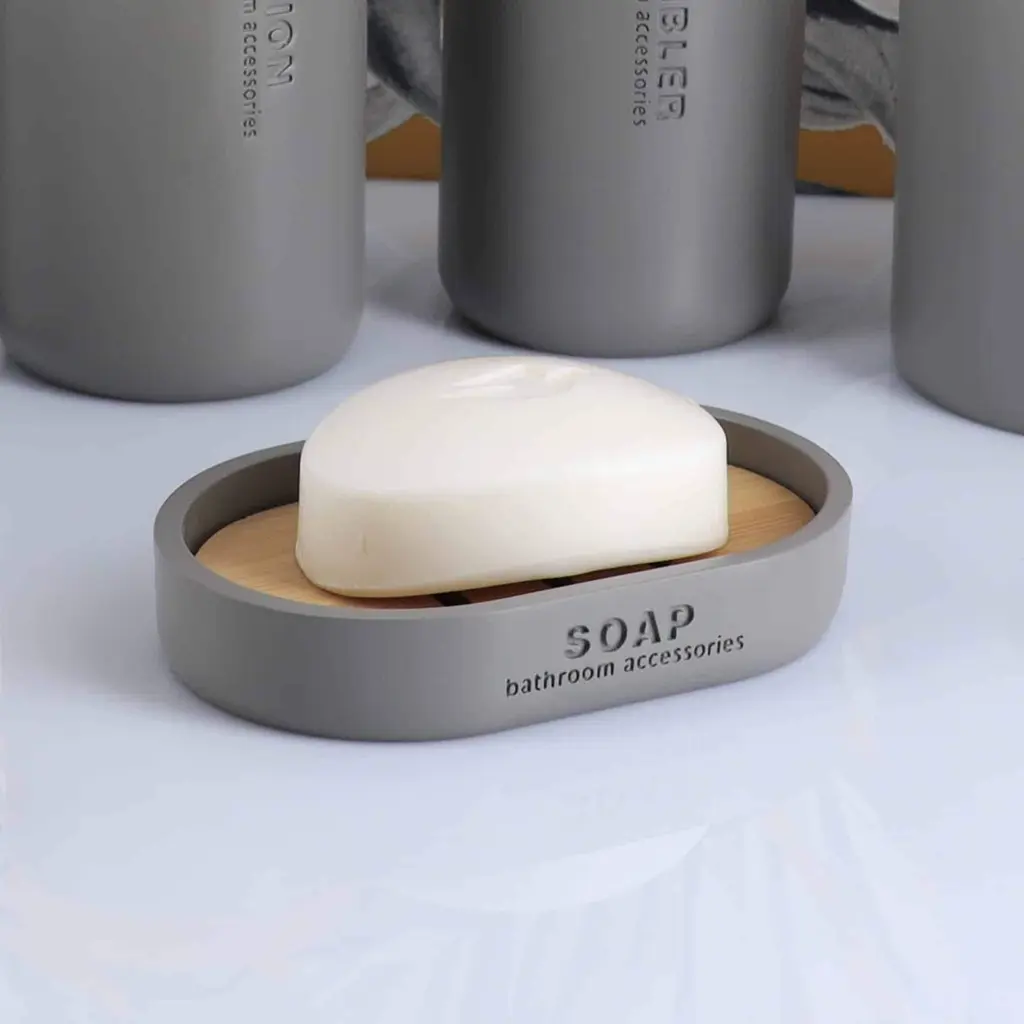 Enhance your bathroom with our Stylish Soap Holder, a combination of style and functionality. This modern soap dish adds a subtle touch of color and sophistication to any bathroom décor. Moreover, the bamboo base makes it durable and natural. Additionally, the compact design of this bar soap holder fits perfectly into any bathroom size, large or small.Furthermore, its polyresin construction ensures long-term durability and moisture resistance. It makes this soap tray an ideal choice for the bathroom environment. Importantly, the smooth surface of this bath accessory is incredibly easy to clean. This polyresin soap dish isn't limited to the bathroom; it's versatile enough to be used in the kitchen, laundry, or guest room, adding a touch of elegance. Additionally, it's perfectly sized to accommodate most standard soap bars, adding practicality to its stylish design. Transform your bathroom into a sanctuary of elegance with our Stylish Soap Holder with Bamboo Base.Imported from France, Made in China
