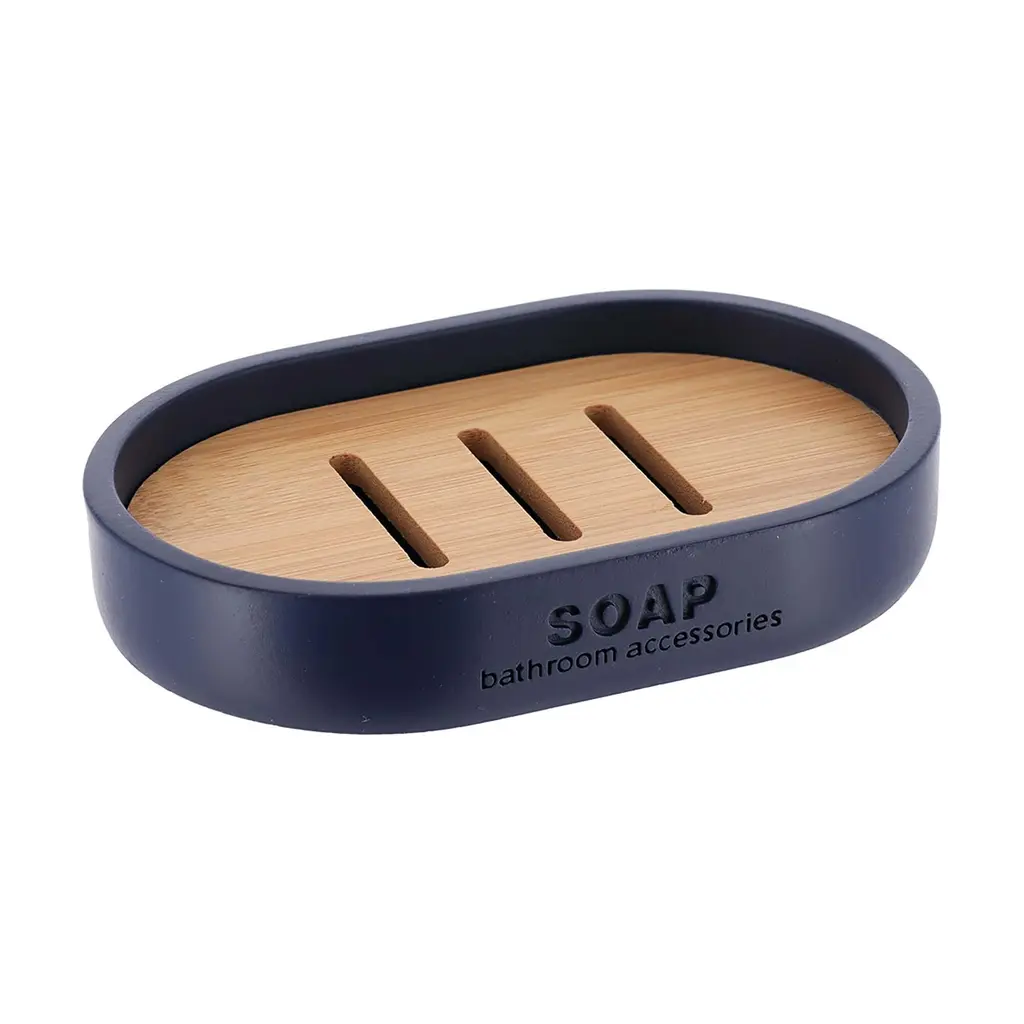 Chic Polyresin Soap Dish With Draining Bamboo Insert - 5 L X 3.4 W X 1 H - Navy Blue