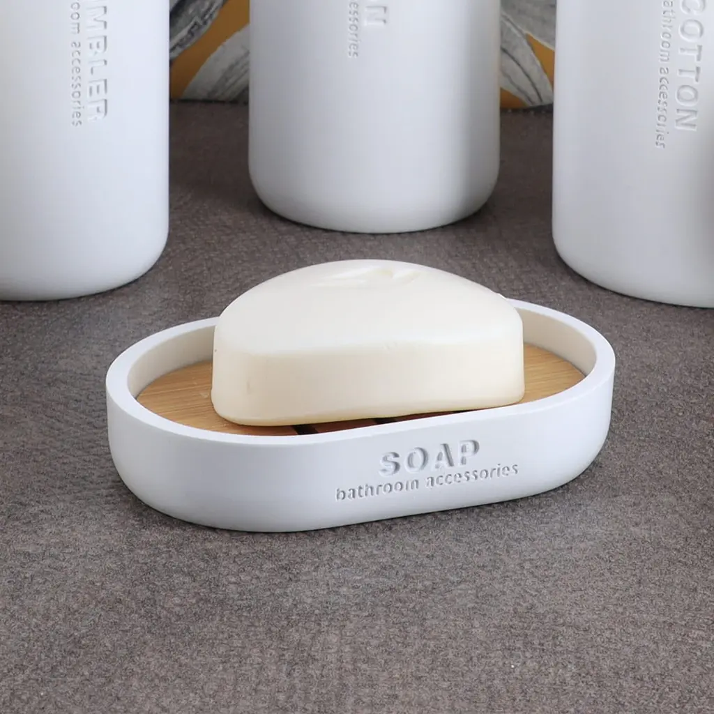 Enhance your bathroom with our Stylish Soap Holder, a combination of style and functionality. This modern soap dish adds a subtle touch of color and sophistication to any bathroom décor. Moreover, the bamboo base makes it durable and natural. Additionally, the compact design of this bar soap holder fits perfectly into any bathroom size, large or small.Furthermore, its polyresin construction ensures long-term durability and moisture resistance. It makes this soap tray an ideal choice for the bathroom environment. Importantly, the smooth surface of this bath accessory is incredibly easy to clean. This polyresin soap dish isn't limited to the bathroom; it's versatile enough to be used in the kitchen, laundry, or guest room, adding a touch of elegance. Additionally, it's perfectly sized to accommodate most standard soap bars, adding practicality to its stylish design. Transform your bathroom into a sanctuary of elegance with our Stylish Soap Holder with Bamboo Base.Imported from France, Made in China