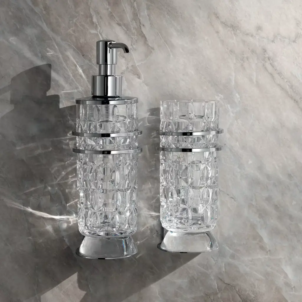 Add a refined touch to the bathroom vanity with the Circle Pattern Toothbrush Holder. Its hand-cut crystal structure is embellished with a raised circle motif, exuding a timeless allure with a hint of glamour. Offering the perfect fusion of luxury Italian design and artisanal excellence, this toothbrush holder pairs beautifully with the Circle Pattern Soap Dish.