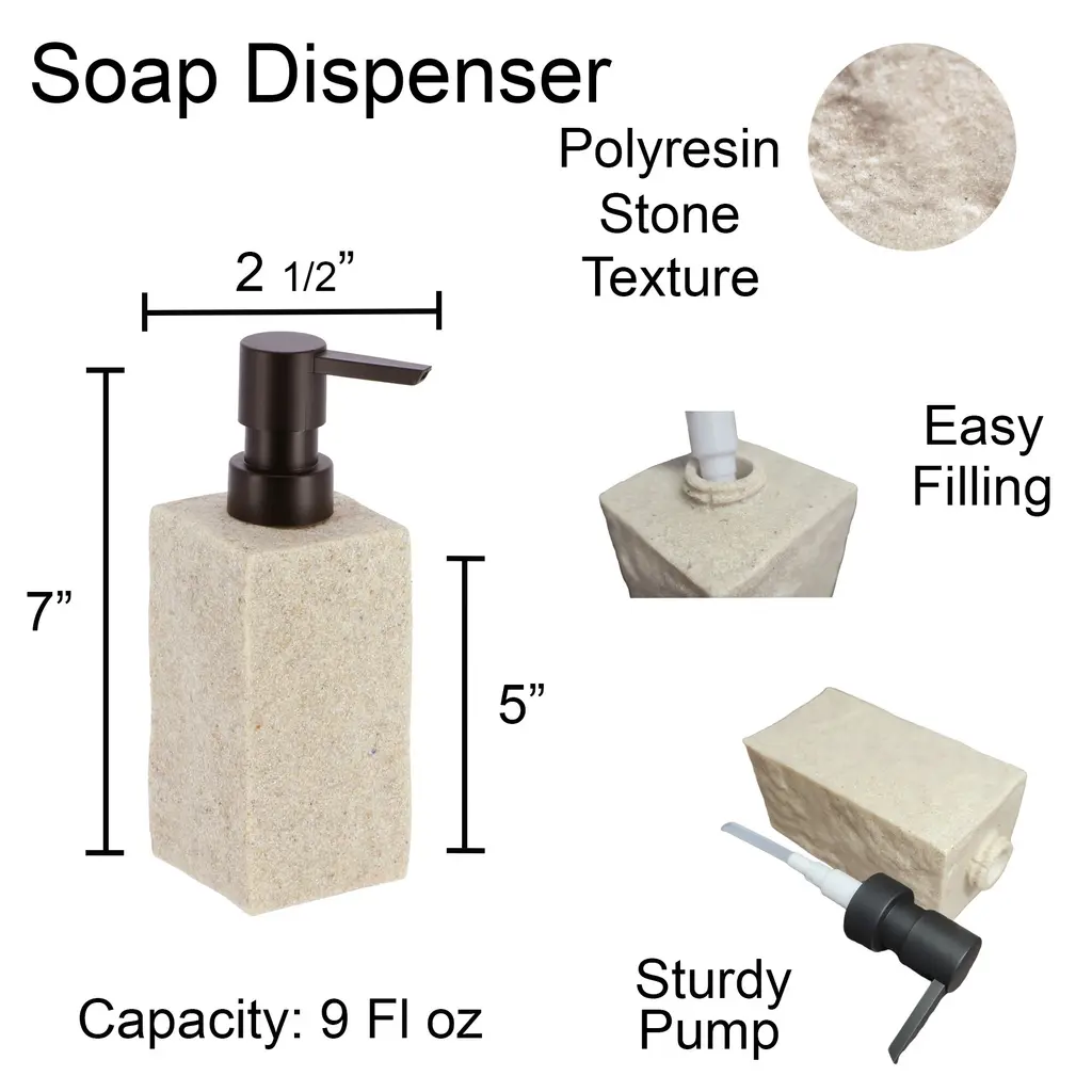 Collection Stone Effect Bath Accessory Set-4 Pieces - Lotion Soap Dispenser Only - Natural