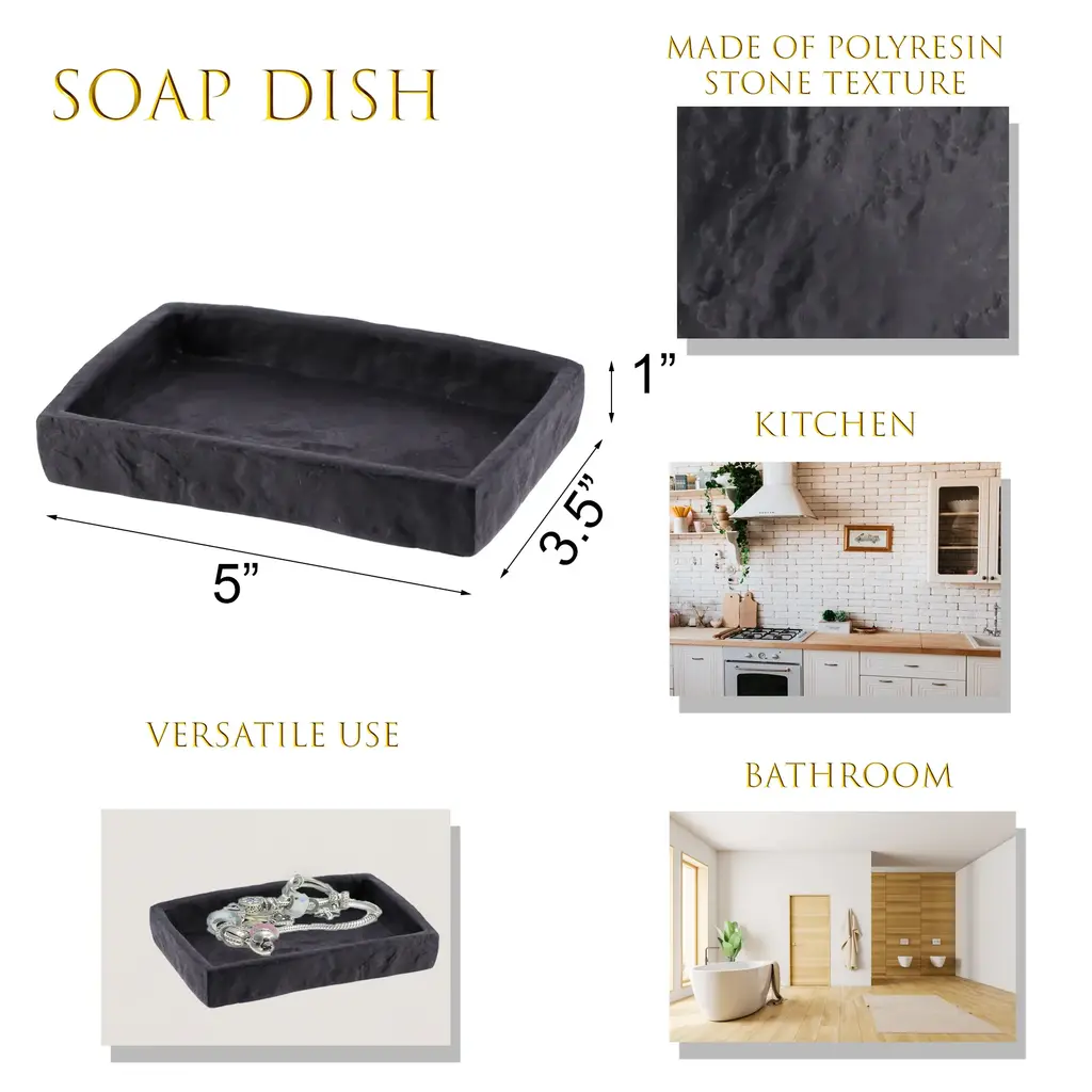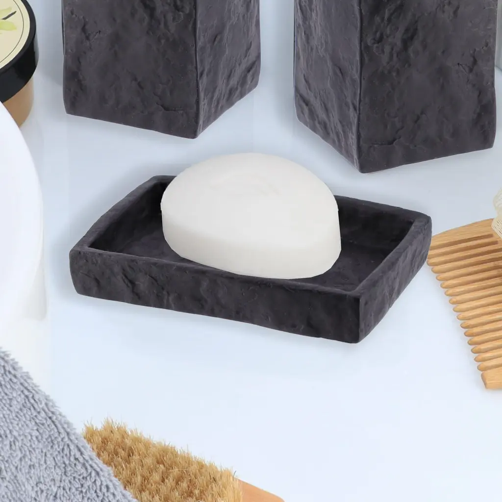 Collection Stone Effect Bath Accessory Set-4 Pieces - Soap Dish Holder Only - Black