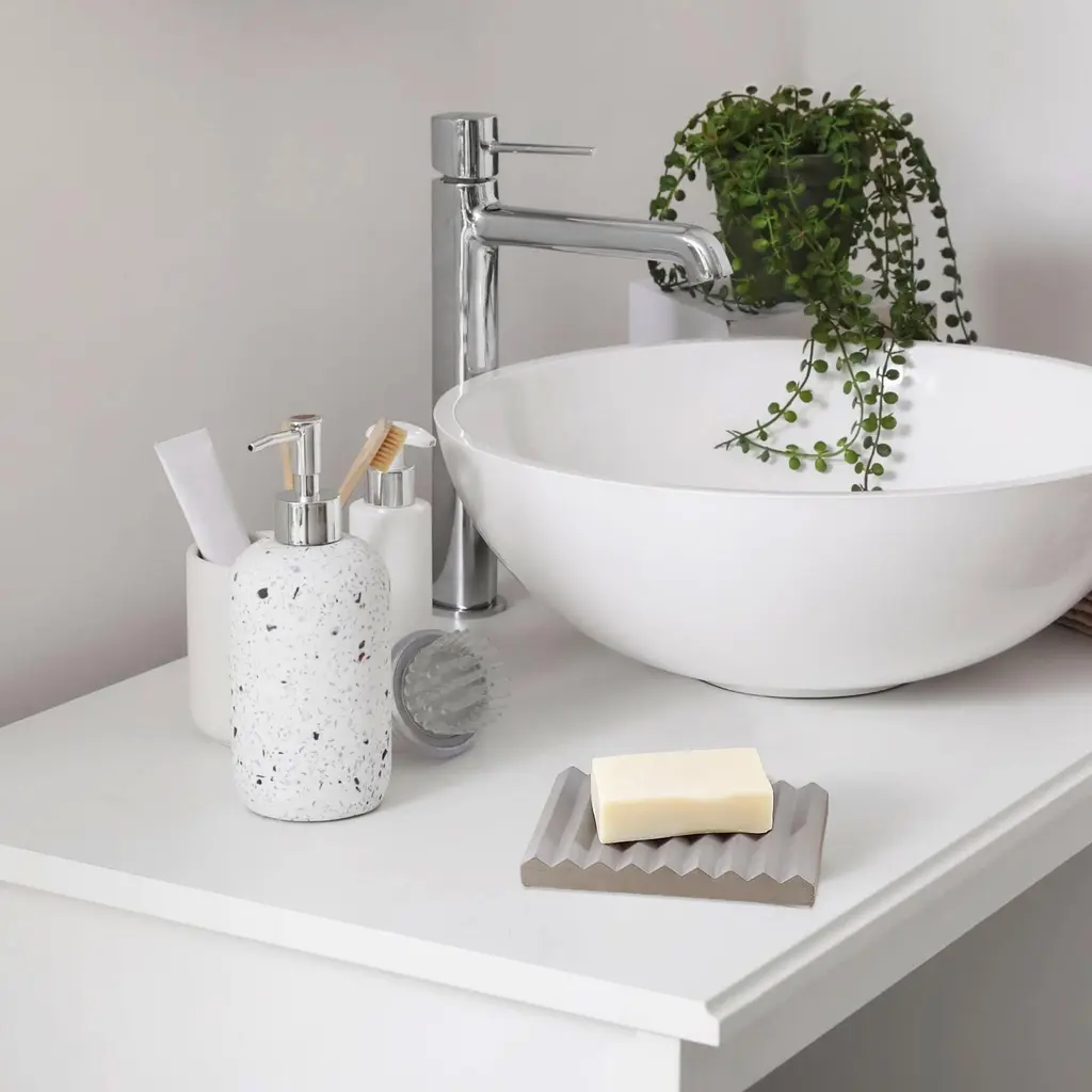 RIBBED DESIGN: This bar soap holder features a sleek ribbed surface to promote quick drainage and keep your soap dry and residue-freeDURABLE MATERIAL: Crafted from sturdy concrete cement, our soap tray ensures long-lasting use and resistance to wear and tearMODERN STYLE: Featuring a Majorelle blue or gray finish, this soap saver adds a contemporary touch to your bathroom or kitchen decorCOMPACT SIZE: Measuring 5.2 x 3.6 x 0.6 inches, this kitchen soap tray fits perfectly on countertops without taking up excessive spaceMULTIFUNCTIONAL USE: Our Soap container is ideal for holding soap bars, sponges or small accessories in the bathroom, kitchen, or laundry roomBrighten up your home with our Cement Bathroom Soap Holder. Designed with an elegant ribbed surface, it promotes quick drainage to keep your soap dry and residue-free. Moreover, its modern color adds a contemporary touch to any bathroom or kitchen countertop. Additionally, this soap dish for bathroom sink is made of durable concrete cement for long-lasting use. Thanks to its sturdy construction, it resists daily wear and tear while providing a stable base for your soap. Furthermore, its compact size of 5.2" x 3.6" x 0.6" fits perfectly on small countertops. Not only is it functional, it is also versatile for various uses. You can use it to hold soap bars, sponges or small accessories in bathrooms, kitchens or laundry rooms. Moreover, its minimalist design blends seamlessly with modern or classic decor. Plus, the smooth surface ensures easy cleaning, keeping your space fresh and tidy. Whether for your home or as a thoughtful gift, this self draining soap dish offers style and practicality. Finally, its ribbed design prevents water buildup, ensuring your soap stays dry and ready to use. Choose this bathroom soap dish to enhance your countertop while keeping your essentials organized. Its combination of durability and elegance makes it a must-have for any home.