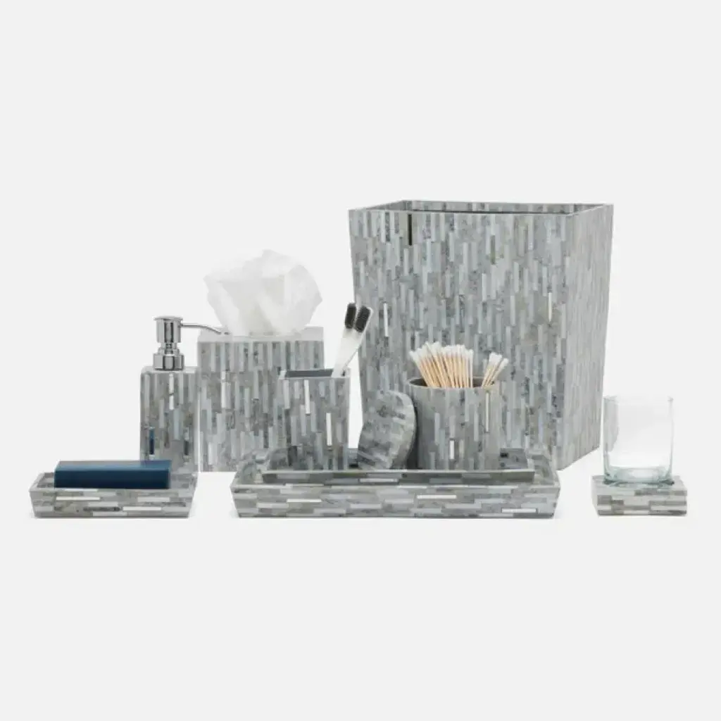 Add some understated glamour with the Cortona's sparkle. Clamstone and troca shells show the offset pattern's shimmer while metal rods add the shine. Go with brass to warm up a space, or cool it down with silver. The designers at Pigeon & Poodle believe the details of a home are just as important as the furniture. A gorgeous toothbrush holder or handcrafted canister can elevate an entire bath, the perfect frame can heighten the feel of a whole space, and a good-looking storage basket can be your look’s missing link. With thoughtful design and top-notch craftsmanship, Pigeon & Poodle create home accessories with the care and attention typically reserved for larger pieces of décor.