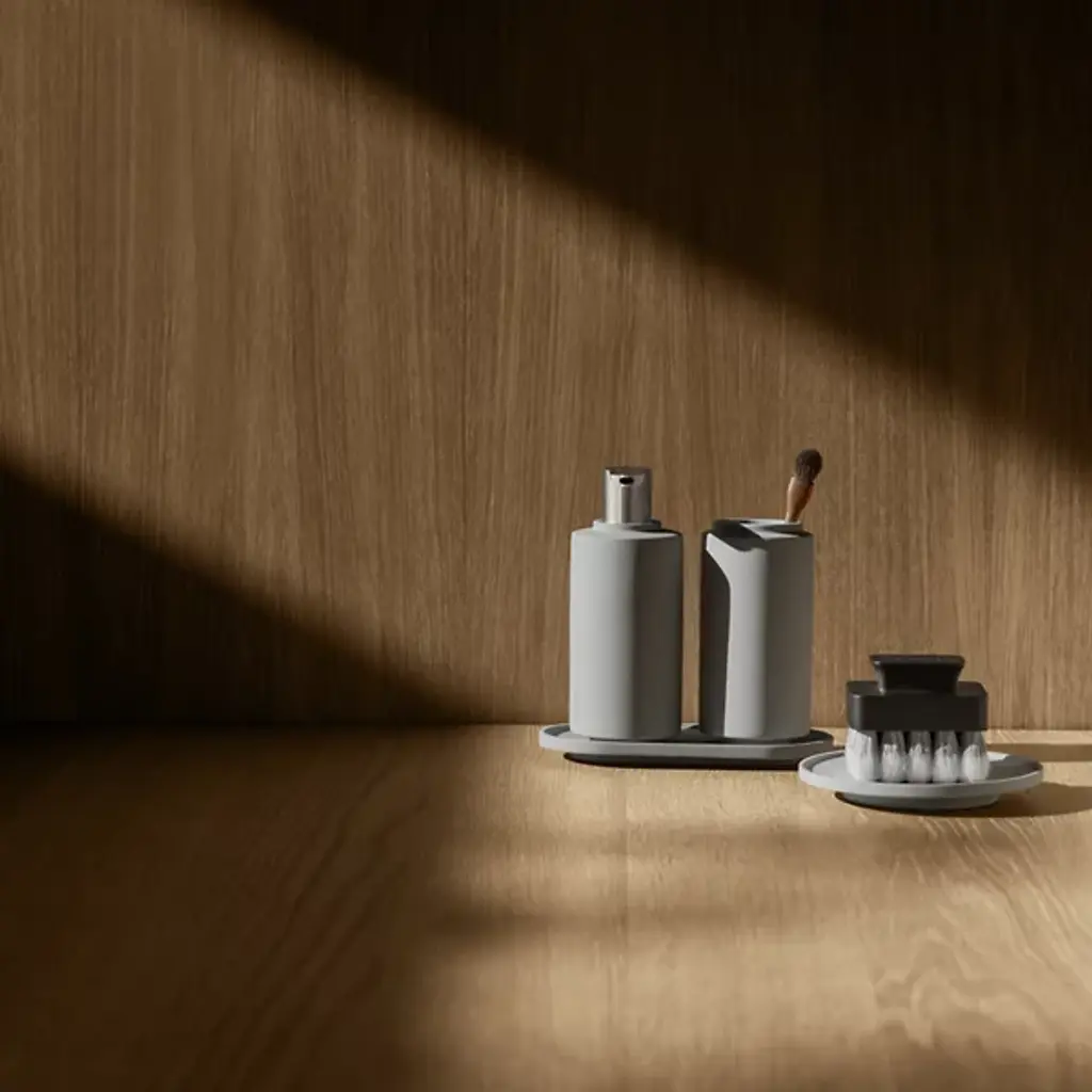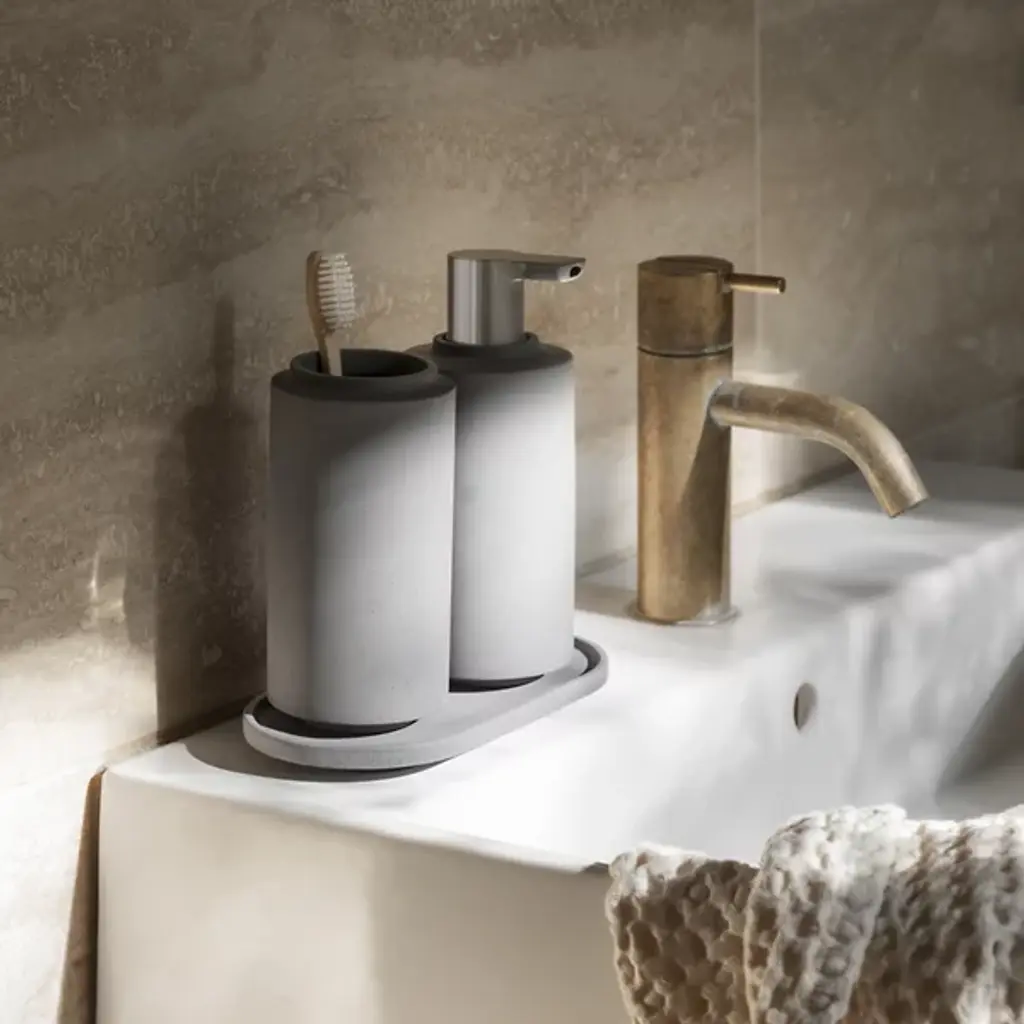 The Creto Soap Dispenser from Blomus brings rugged charm to sink-side essentials with its raw concrete body and refined detailing. Designed by Nina Thöming, the dispenser features a durable, cylindrical form sealed with a protective PU coating. A zinc alloy pump head adds a smooth, metallic contrast to the textured concrete, offering a clean pump with every use. A discreet silicone base adds grip and protects surfaces, keeping this inspired industrial dispenser functional and grounded.