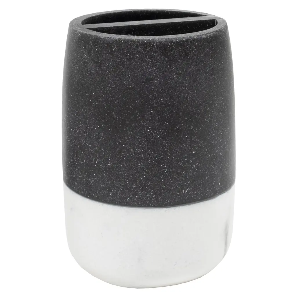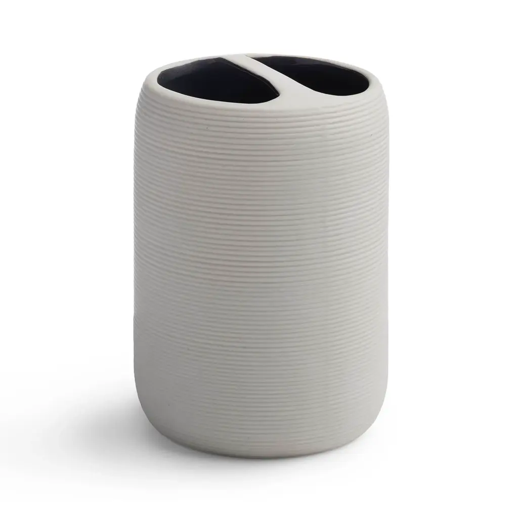 Crafted from porcelain, the Fillmore bath accessories feature a ribbed texture. Ivory on the outside and black on the inside, these accessories achieve the ultimate modern look.
