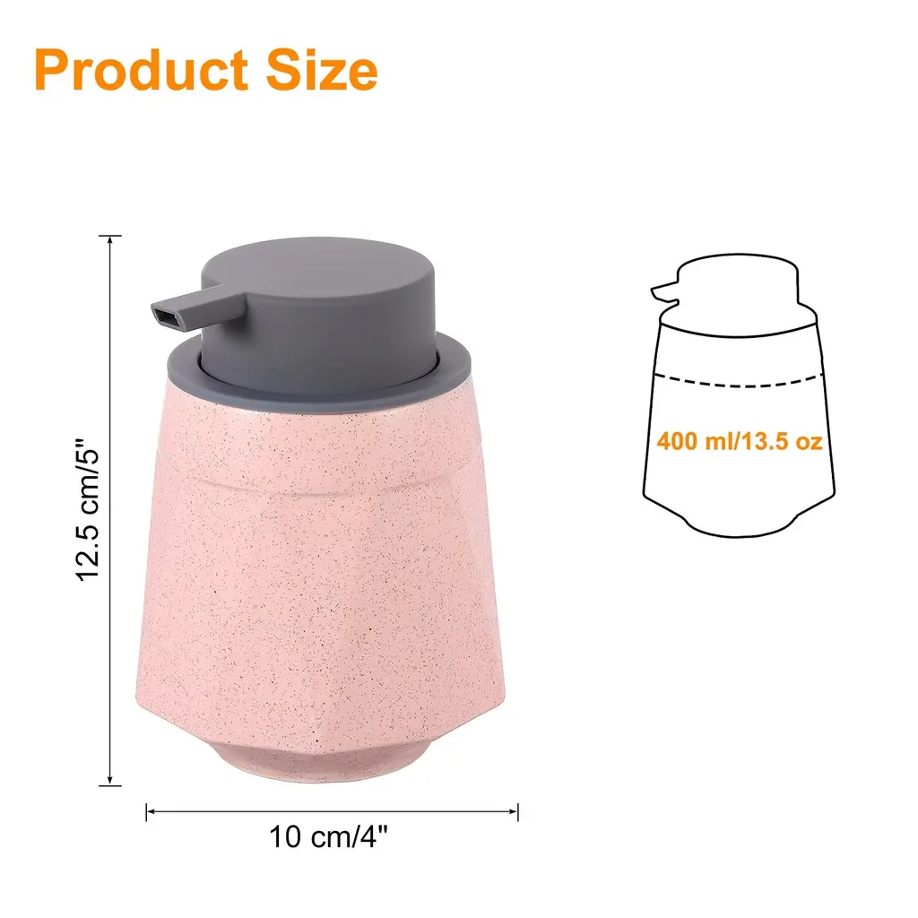 Description:Ceramic Quality and Big Capacity: The soap dispenser is made from quality ABS plastic and ceramic material, which is durable and resistant to wear and tear, and with a capacity of 400 ml/13.5 oz, which is suitable for holding a generous amount of liquid.Create Thick Foam: The foaming soap dispenser features a foaming mechanism that transforms liquid soap into a rich lather, providing a more efficient hand-washing experience.Refillable Design: The soap bottle is refillable and has a wide opening design to help you fill soap effortlessly, allowing users to reuse the dispenser to reduce waste.Simple Operation: Fill the dispenser with liquid soap and 40% water, pump the pump to create foam, and smoothly deliver a proper amount of lather out by a long spout, and wash your hands or body as usual.Versatile Application: The foam hand soap dispenser pump is great for placement in bathrooms, kitchens, laundry, hotels, and more places, for hand soap, dish soap, body wash, shampoo, conditioner, face cleaner, lotion, shaving cream, and so on.Specification:Material: ABS Plastic, CeramicColor: Dark GreyCapacity: 400 ml/13.5 ozDispenser Bottom Diameter: 10 cm/4 inchDispenser Height: 12.5 cm/5 inchPump Head Length: 2.5 cm/1 inchPackage Included: 1 pc x Foaming Soap Dispenser