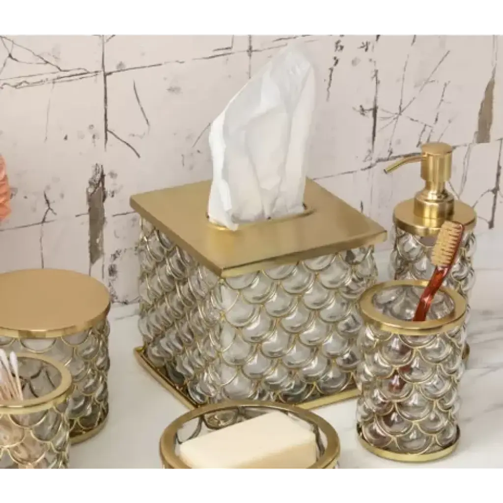 Gila Clear/brushed Gold Tissue Box 6"l X 6"w X 7"h