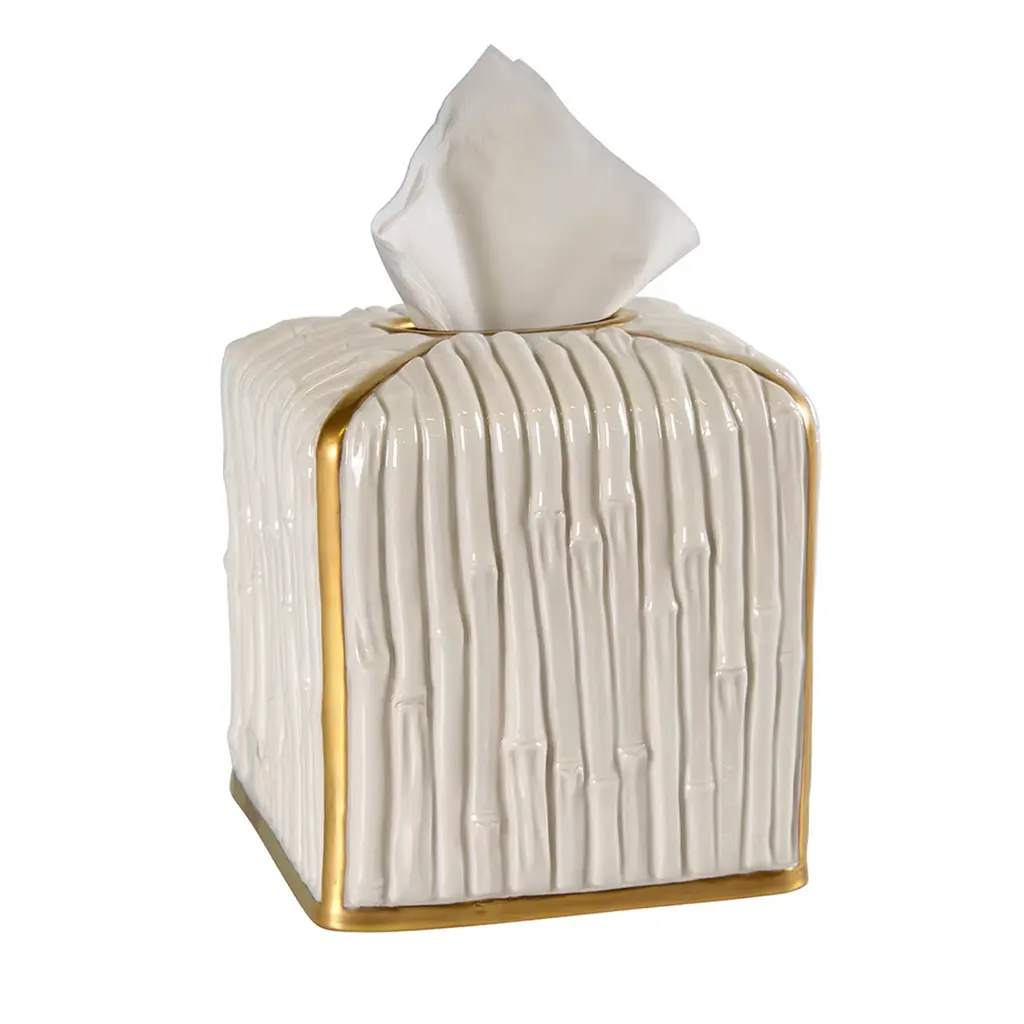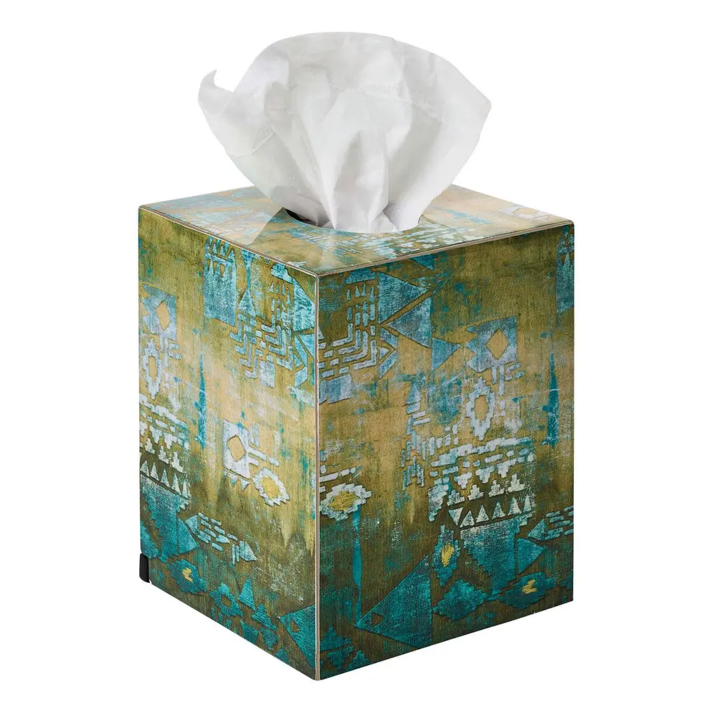 - Handcrafted tissue box cover made of wood and cow bone from Colombia. - Almond shaped bone is intricately inlaid to create a unique aesthetic, which is completed with a high-gloss lacquer finish.