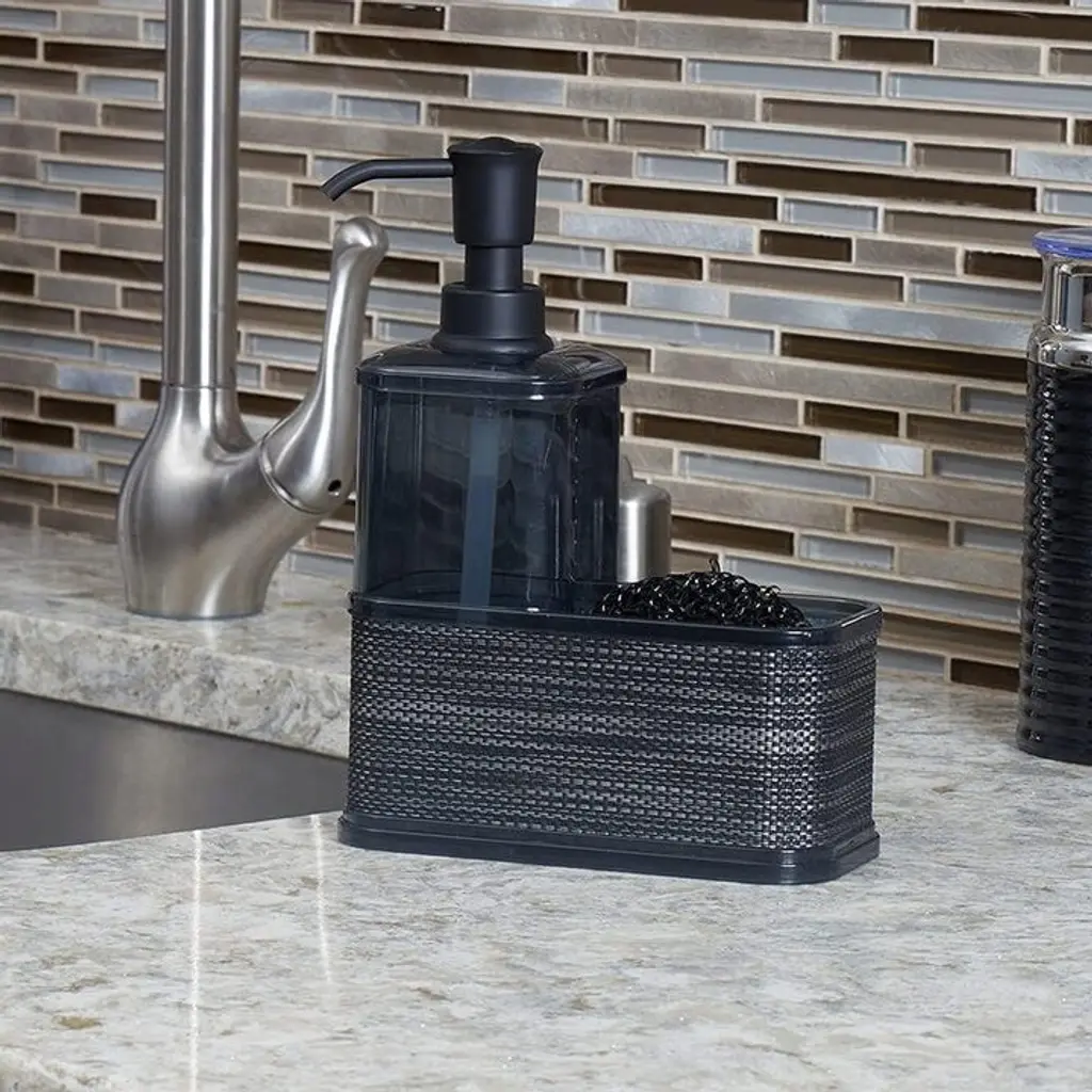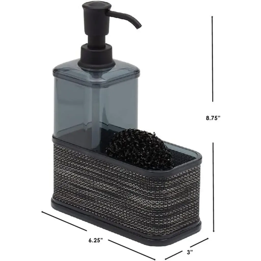 Home Basics Soap Dispenser With Basketweave Sponge Holder, Black, 18.6 Oz - 3 X 6.25 X 8.75 Inches - 3 X 6.25 X 8.75 Inches