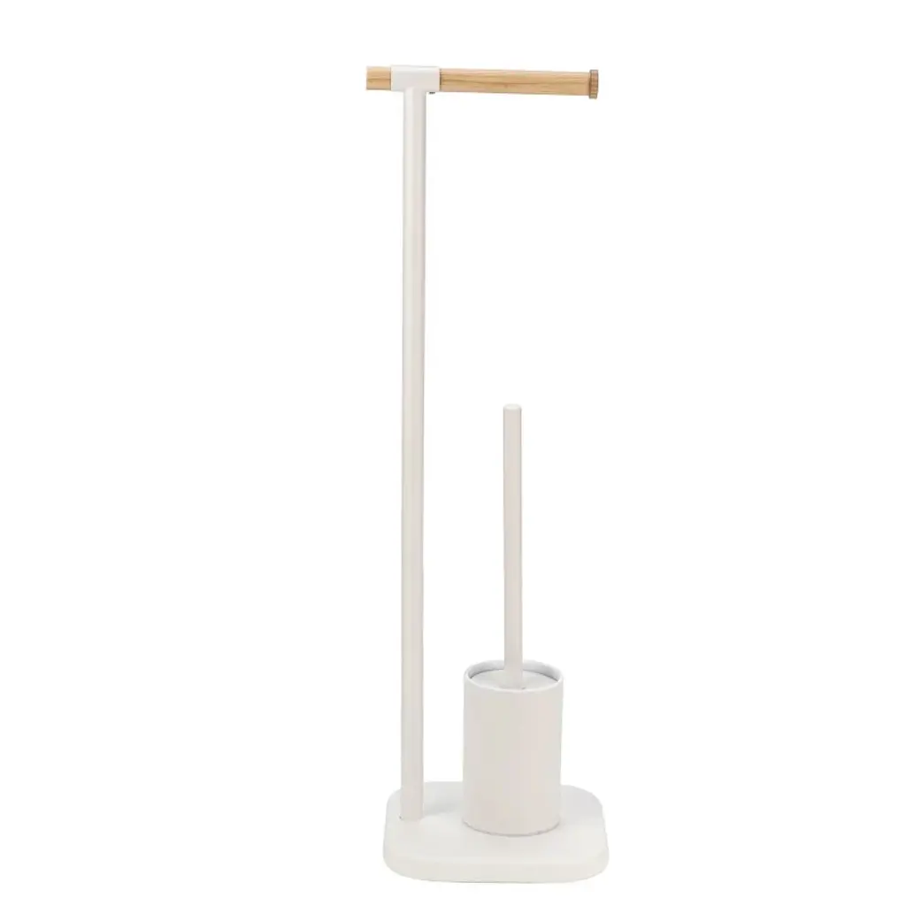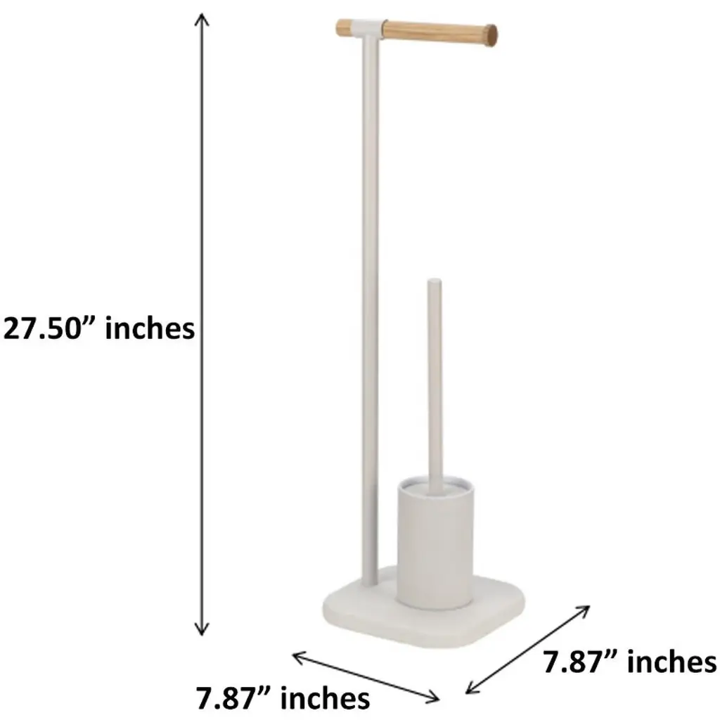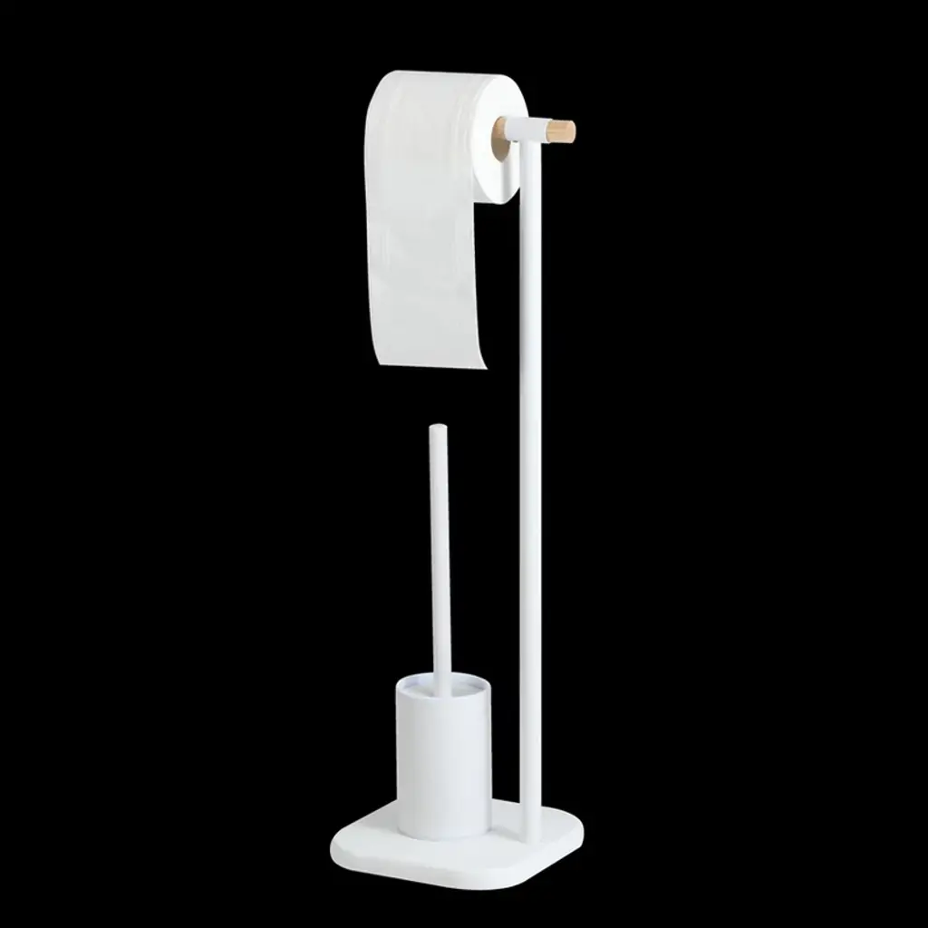 Toilet paper holder and toilet brush 2-in-1, saving space. This bathroom toilet paper holder standing comes with a toilet brush and holder set for easy cleaning at any time. SIZE: This free standing toilet paper holder with toilet bowl brush and holder measures 27.5" x 7.87" x 7.87". MATERIALS: This free standing toilet paper holder with toilet bowl brush and holder is made of high-quality heavy stainless steel material, durable and rust-proof. Toilet paper holder and toilet brush 2-in-1, saving space. This bathroom toilet paper holder standing comes with a toilet brush and holder set for easy cleaning at any time. The weighted base of the toilet paper holder stand with toilet scrubber's base makes it stable to stand. Our toilet bowl brush has a removable plastic liner, easy to clean, prevents sewage from entering. Dense toilet bowl cleaner brush head is sturdy