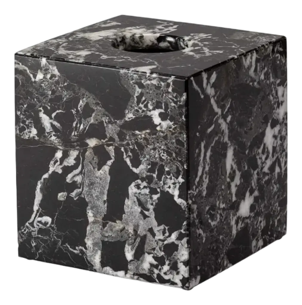 Tissue box holder in marbleized resin. Hand wash. 5.3"Sq, x 5.7"T. Imported. About Kassatex Founded in 1999, Kassatex was created with the vision of providing consumers with bed and bath collections that offer casual, affordable luxury. With headquarters located in the heart of Manhattan's Garment District, Kassatex is surrounded by the latest trends, set against a backdrop of timeless, classic New York style. This unique mix influences everything we do in our collections. Like New York, Kassatex is modern with old-world values. We are committed to helping our customers make a statement by escaping the ordinary.