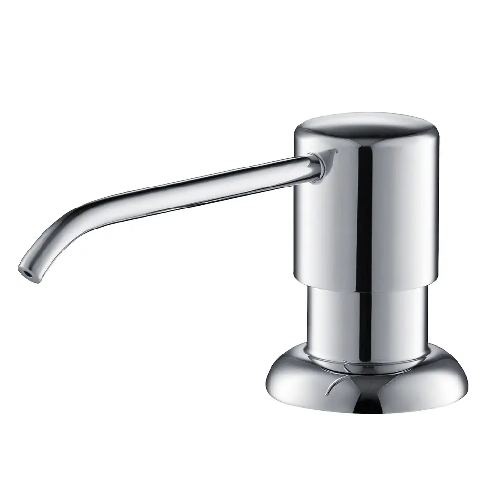 This easy-push self-priming solid metal soap dispenser is the perfect complement for your kitchen faucet. The large-capacity bottle holds your choice of liquid soap, lotion, or hand sanitizer, and refills from above the counter for maximum convenience. A threaded connection makes installation easy, with a tight waterproof seal to protect against leaks. The heavy-duty pump rotates 360 degrees so you can position the nozzle anywhere you need it. The universal design complements any decor style and coordinates with all Kraus kitchen faucets. Customize the look with your choice of flawless rust-resistant finishes.From the ManufacturerWith a long history of manufacturing exceptional kitchen and bathroom products, we at KRAUS believe in the power of design to transform ordinary environments into beautiful spaces. Our goal is to deliver the highest value possible for our customers, providing innovative fixtures at approachable prices. We want to empower consumers, allowing them to transform their homes with intuitive designs and easy-to install products that are built for a lifetime of use. We strive to continuously raise the bar in terms of quality, function, and design. Transform your kitchen and bath with KRAUS, and experience Innovation for Real Life.Kraus KSD-53 Features:Kraus KSD-53 Specifications: