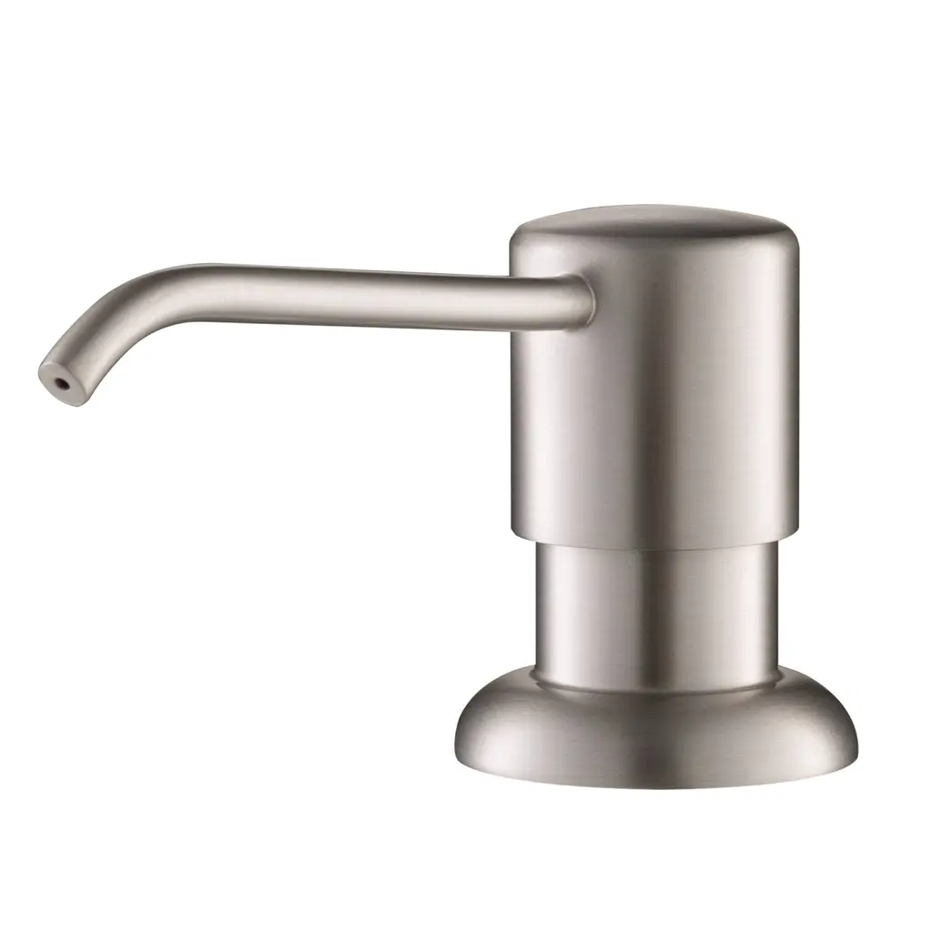 This easy-push self-priming solid metal soap dispenser is the perfect complement for your kitchen faucet. The large-capacity bottle holds your choice of liquid soap, lotion, or hand sanitizer, and refills from above the counter for maximum convenience. A threaded connection makes installation easy, with a tight waterproof seal to protect against leaks. The heavy-duty pump rotates 360 degrees so you can position the nozzle anywhere you need it. The universal design complements any decor style and coordinates with all Kraus kitchen faucets. Customize the look with your choice of flawless rust-resistant finishes.From the ManufacturerWith a long history of manufacturing exceptional kitchen and bathroom products, we at KRAUS believe in the power of design to transform ordinary environments into beautiful spaces. Our goal is to deliver the highest value possible for our customers, providing innovative fixtures at approachable prices. We want to empower consumers, allowing them to transform their homes with intuitive designs and easy-to install products that are built for a lifetime of use. We strive to continuously raise the bar in terms of quality, function, and design. Transform your kitchen and bath with KRAUS, and experience Innovation for Real Life.Kraus KSD-53 Features:Kraus KSD-53 Specifications: