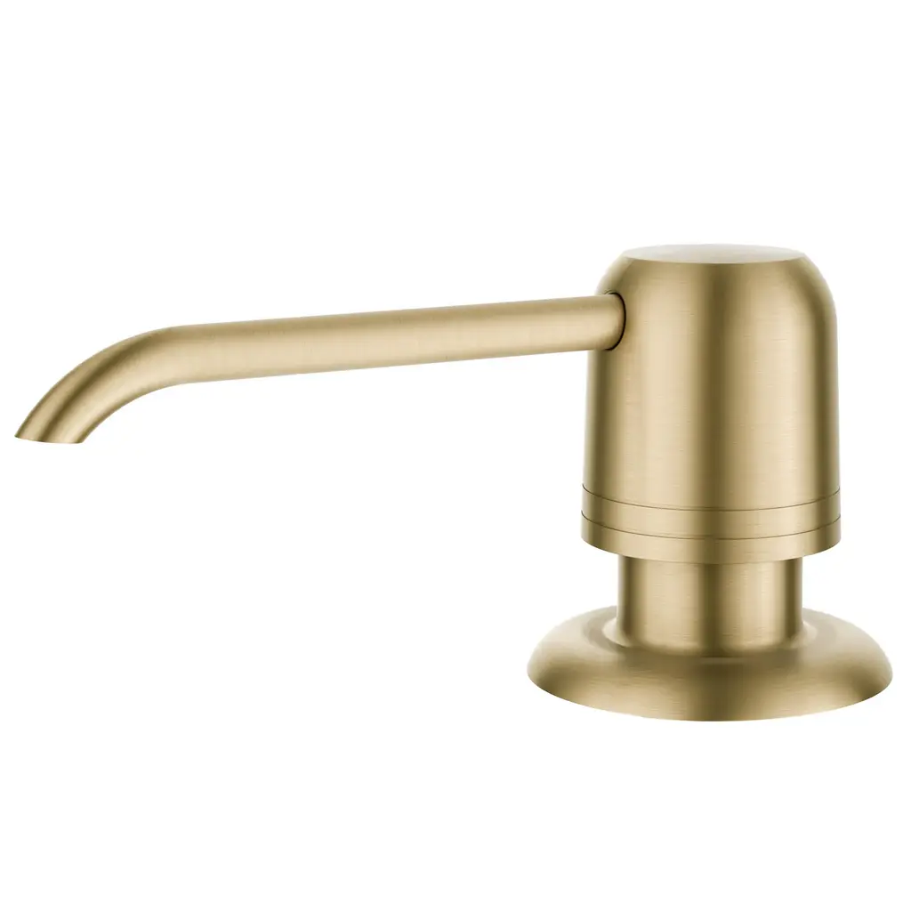 Self-priming solid brass soap dispenser with large-capacity bottle refills from above the counter with no need to go underneath the kitchen sink. The universal design complements any kitchen decor style and features a threaded connection for easy installation and a heavy-duty pump that rotates 360 degrees for complete sink access.NOTE: Due to their reflective nature, the appearance of gold finishes can vary depending on the lighting in your room. Warmer or cooler light, as well as hues of surrounding objects, can affect the way it looks. Actual appearance when installed in the home environment may differ slightly from the images shown.