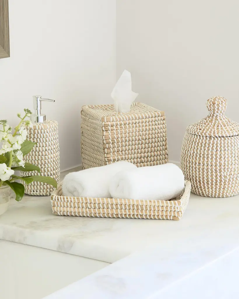 We’ve taken our favorite seagrass basket and reimagined it for the bath. Handcrafted with recycled resin and natural seagrass, it brings a beachy style to your space. It’s fabulously durable, too.