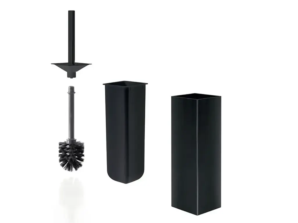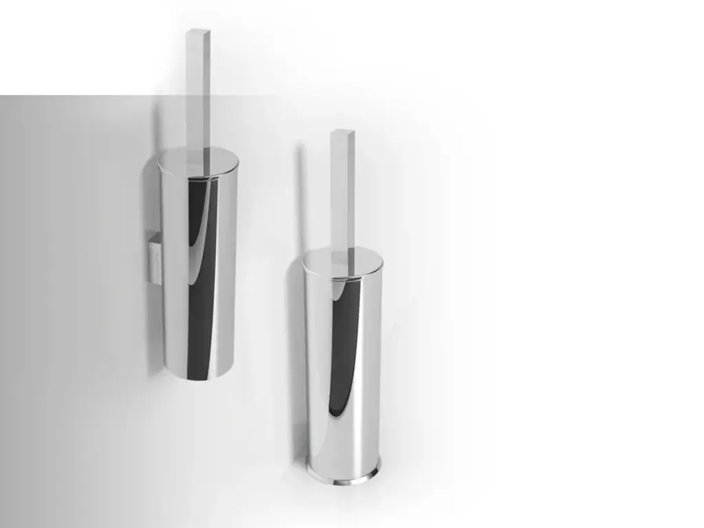Wall mounted/free-standing toilet brush holder.Lea, essential functionality. Desire for new geometries with the purity of a rectangular section form , a complete system of accessories that meets with specifi c proposals the needs and functions of bathroom design!The series can be wall-mounted using the glue from the kit to avoid drilling of ceramics or installed with screws and dowels.