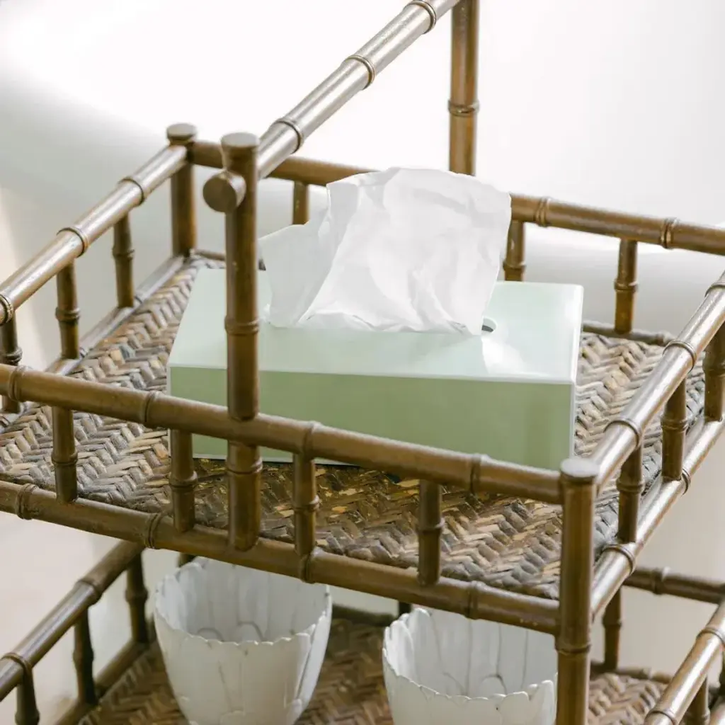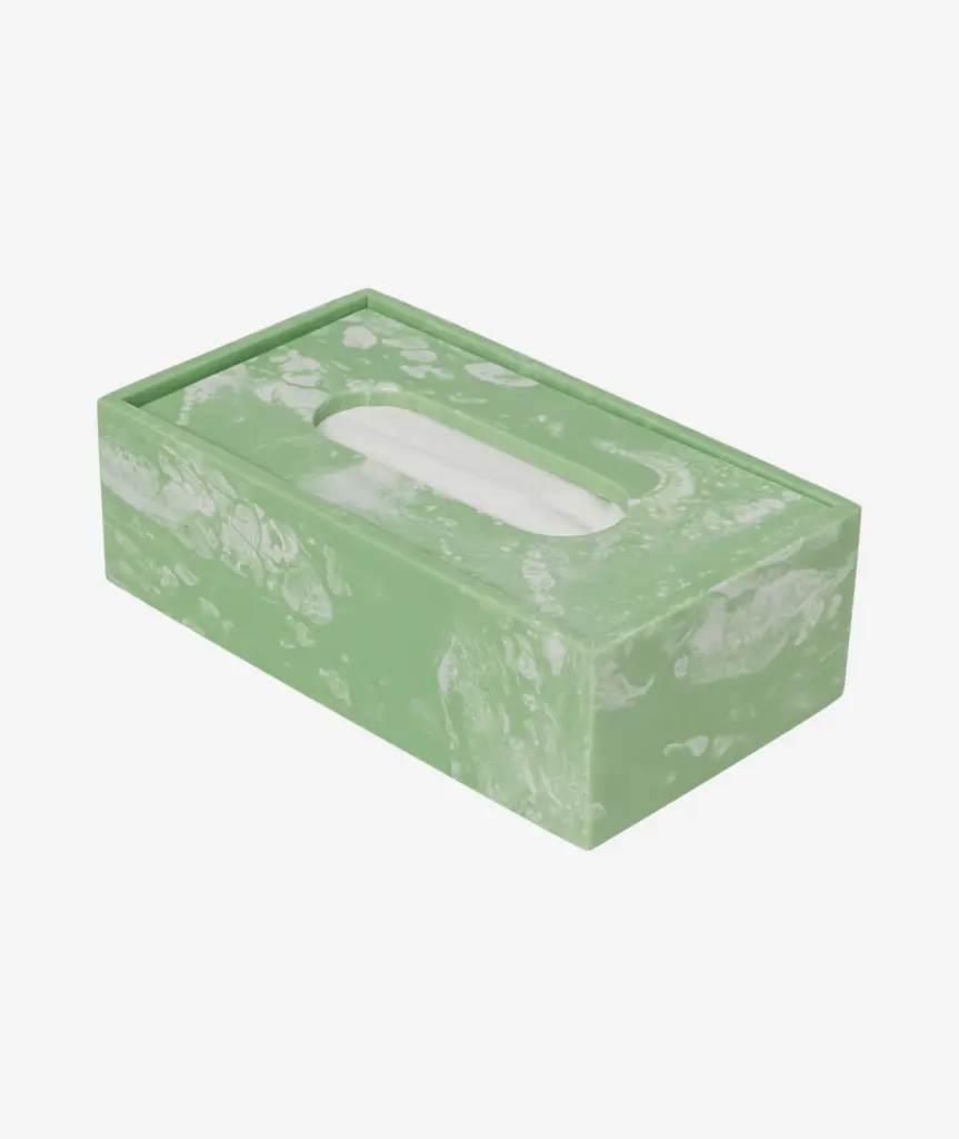 Hide your tissue boxes with our stylish mint rectangular lacquered tissue box. Featuring a white border, a removable magnetic base, each box is made from wood coated with 20 layers of high gloss lacquer, hand polished between each coat.