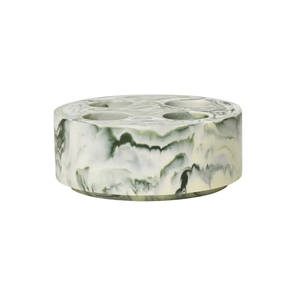 Elevate your daily care routine with the Mist Toothbrush Holder from Ferm Living. Crafted with marbled resin, it boasts lasting durability and understated sophistication. Its geometric design, inspired by art and fashion, holds up to four toothbrushes. Keep your bathroom clean and organized in luxurious style. Highlights