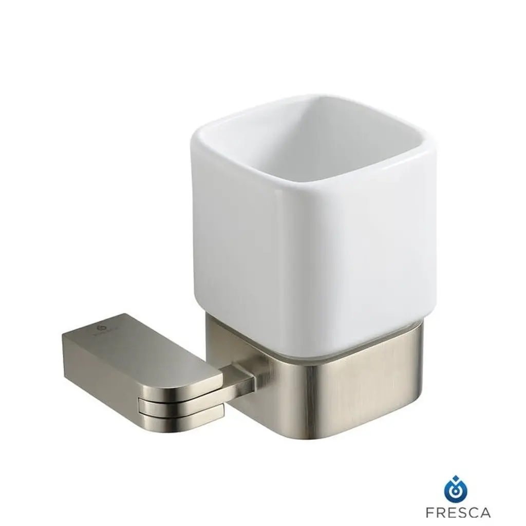 Wall-mounted tumbler holder with satined glass tumbler.Mito is a series of accessories in chromium plated brass to furnish with simplicity and elegance; thanks to an innovative fixing system “clip”, the wall assembly is extremely facilitated.