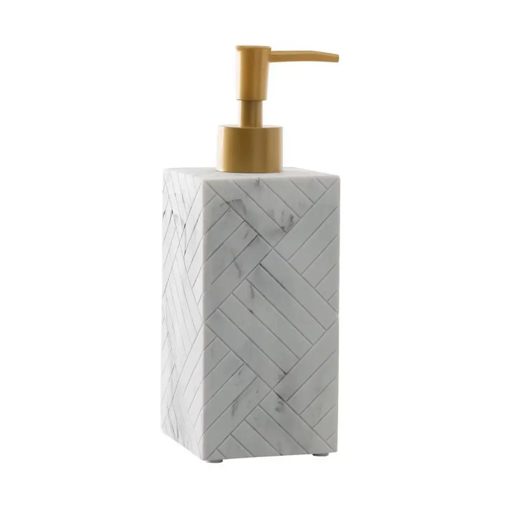 This elegant waffle-patterned resin Braemar lotion/soap dispenser will add a touch of refinement to your bathroom's design. This dispenser is skillfully built for long term function, combining texture and durability in a seamless way. Its roomy 14 oz volume guarantees that you'll always have enough of your preferred soap or lotion. This dispenser will add a touch of modern beauty.