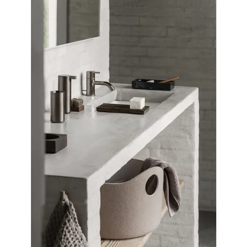 Blomus Modo soap dispenser - metallic finish brings elegant luxury to your bathroom or spa. The Blomus Modo line is made of titanium-coated steel for a sexy, masculine, functional design piece. The colored titanium coating not only provides a pleasant feel but is also durable, corrosion-resistant, and scratch resistant. The Blomus Modo offers a variety of matching bath accessories in the same beautiful ti-coated finish. The metallic color brings a touch of glamour to the bath or spa.