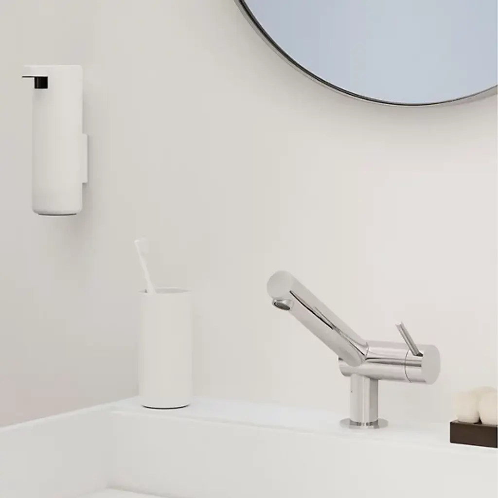 Washing up’s a snap with the MODO Soap Dispenser by Blomus! Starting off with a cylindrical body of rust and scratch-resistant titanium-coated steel, an inset, unobtrusive pump peeks out from the top with a wide surface that’s easy to depress. Finally, the understated style concludes with a non-slip pad on the dispenser’s bottom, protecting the surface below.