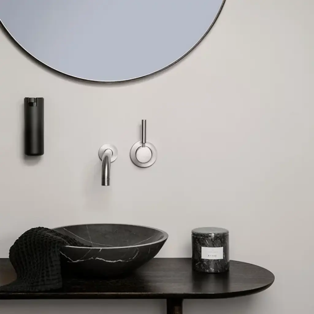 Keep yourself sanitized and your bathroom sophisticated with the MODO Wall Mounted Soap Dispenser from Blomus. This dispenser sets itself apart with a minimalist design of pure shapes. The cylindrical form appears to float in the air as a low-key backplate mounts it to the wall. As a titanium-coated steel piece, the dispenser provides a sleek look with corrosion and scratch-resistant properties. A soft push on top lets clean soap stream neatly out the charming spout.