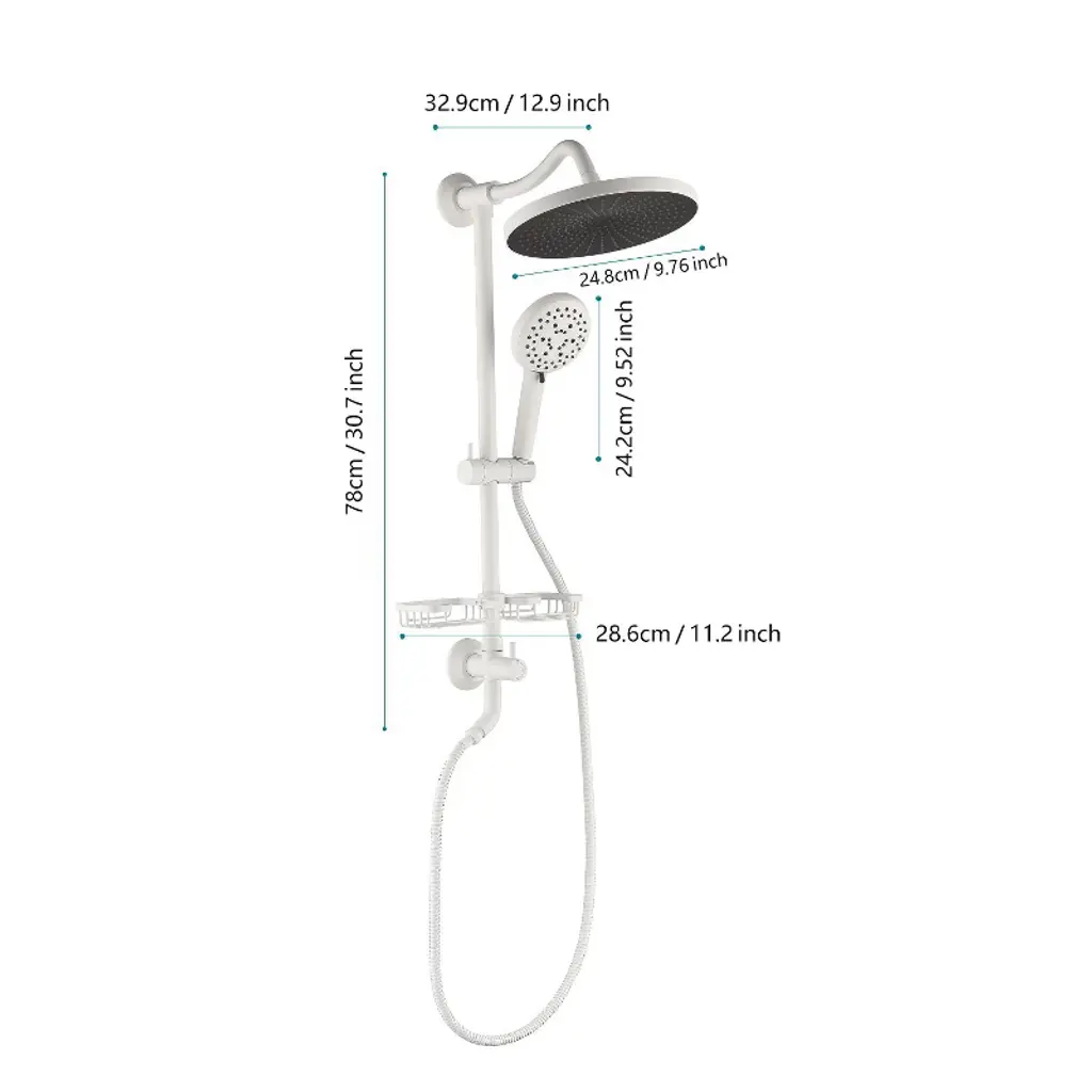 Paged Shower Head Modern 10" Rain Shower Head With 4-function Hand Shower, Adjustable Slide Bar And Soap Dish For Bathroom, White