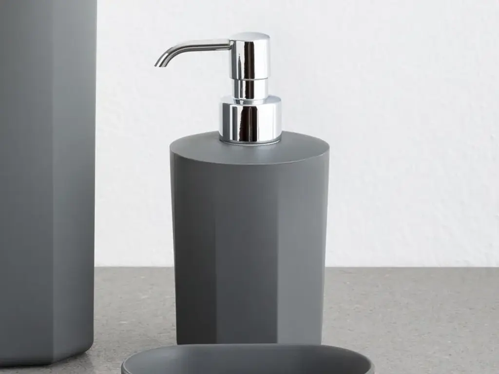 Prisma is a polyurethane gel soft soap dispenser with a particular octagonal shape. It integrates into any type of bathroom, from the most classic to modern bathrooms and thanks to the softness of the gel it is pleasant to look at and to touch.