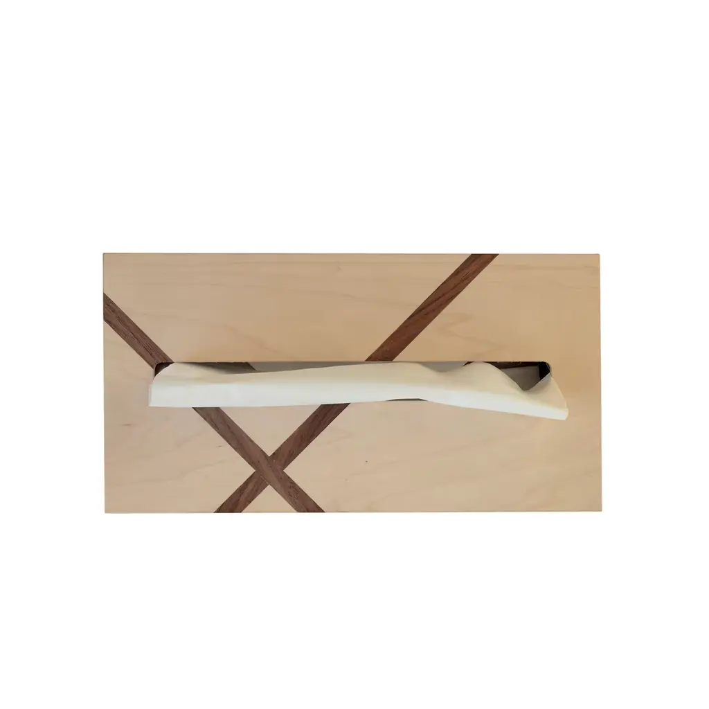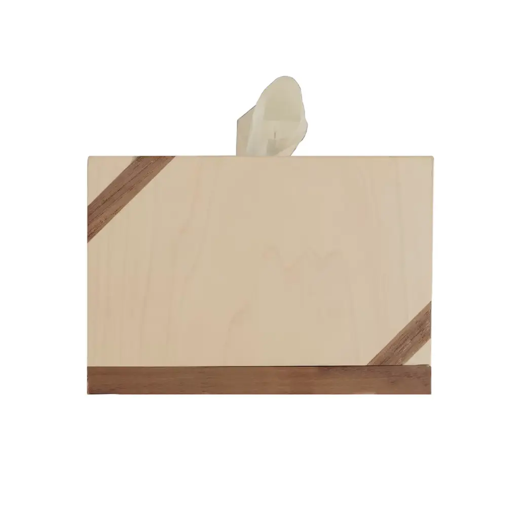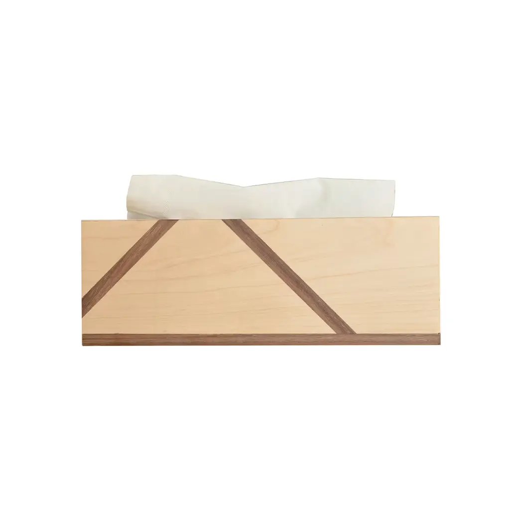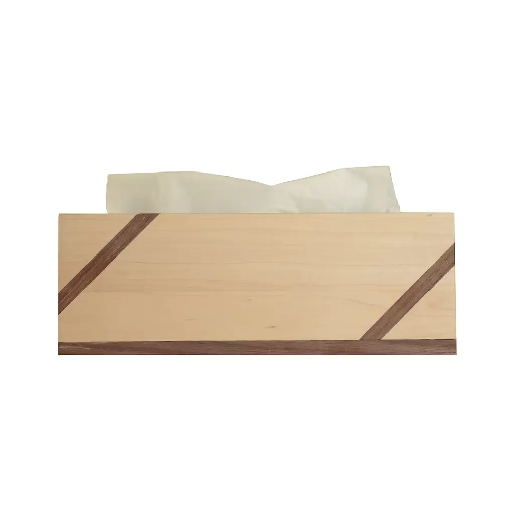 Showcasing an intriguing design of intersecting, dark lines that create a dynamic contrast of walnut marquetries against the maple wooden structure, this tissue box makes for a spot-on addition to desks or bathroom decors in contemporary homes of Scandinavian inspiration. Aptly part of the Stripe Collection, it comes in maple/walnut and maple/black Bolivar options, please consult the Artemest catalog for details. Tissues not included.