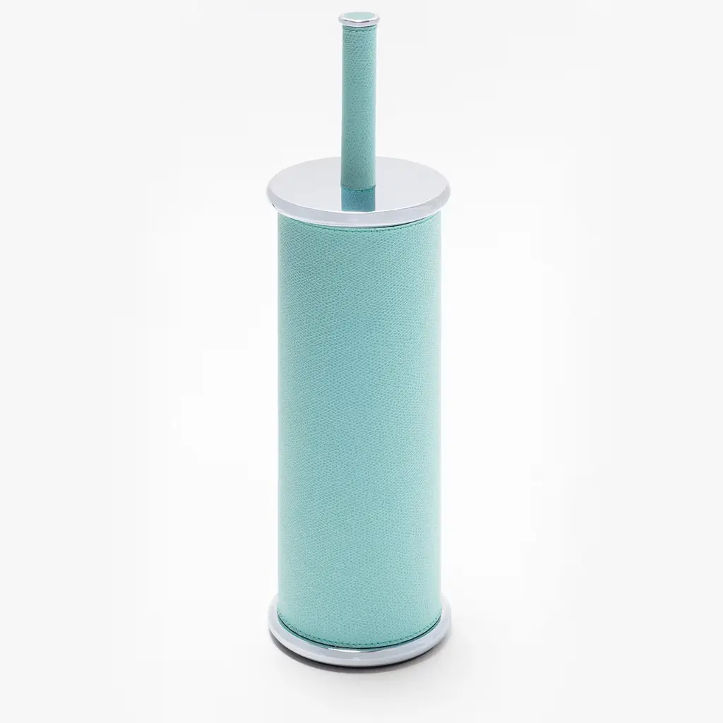 Ravello is a minimal bathroom collection ideal for any setting. The rigid cylindrical main volumes are rendered softer by the smooth decorative rounded edges, while the finest Italian leather, with its velvety texture, is combined with one among three finishes of choice (polished chrome, brushed bronze and brushed brass) for a naturally elegant resulting design. Partially leather-covered metal structure. Non-slip waterproof rubber base underneath.