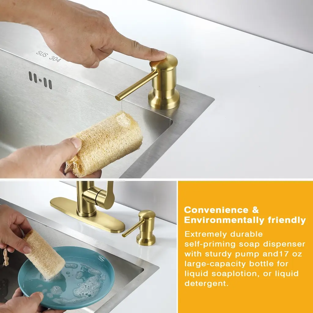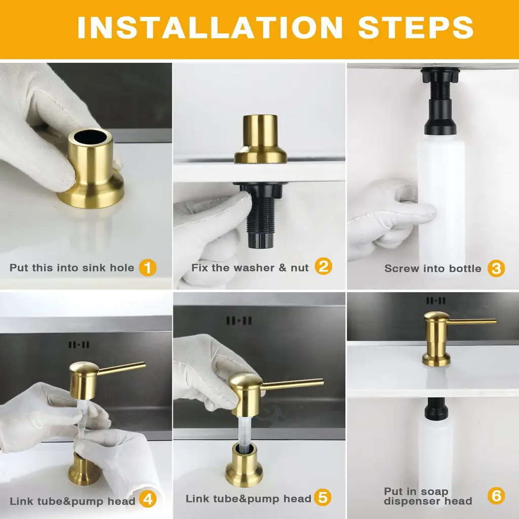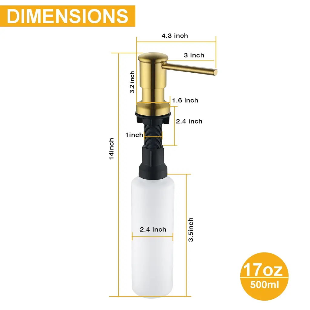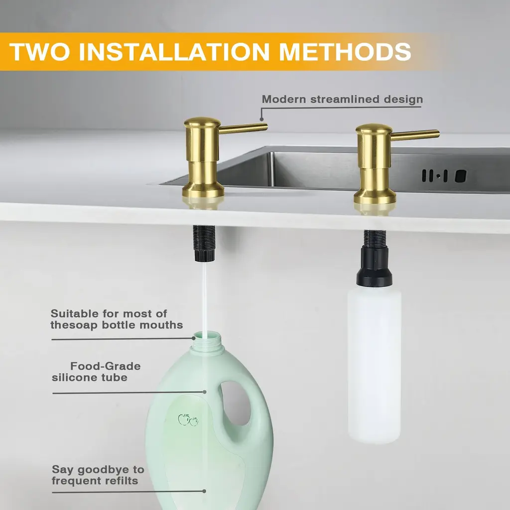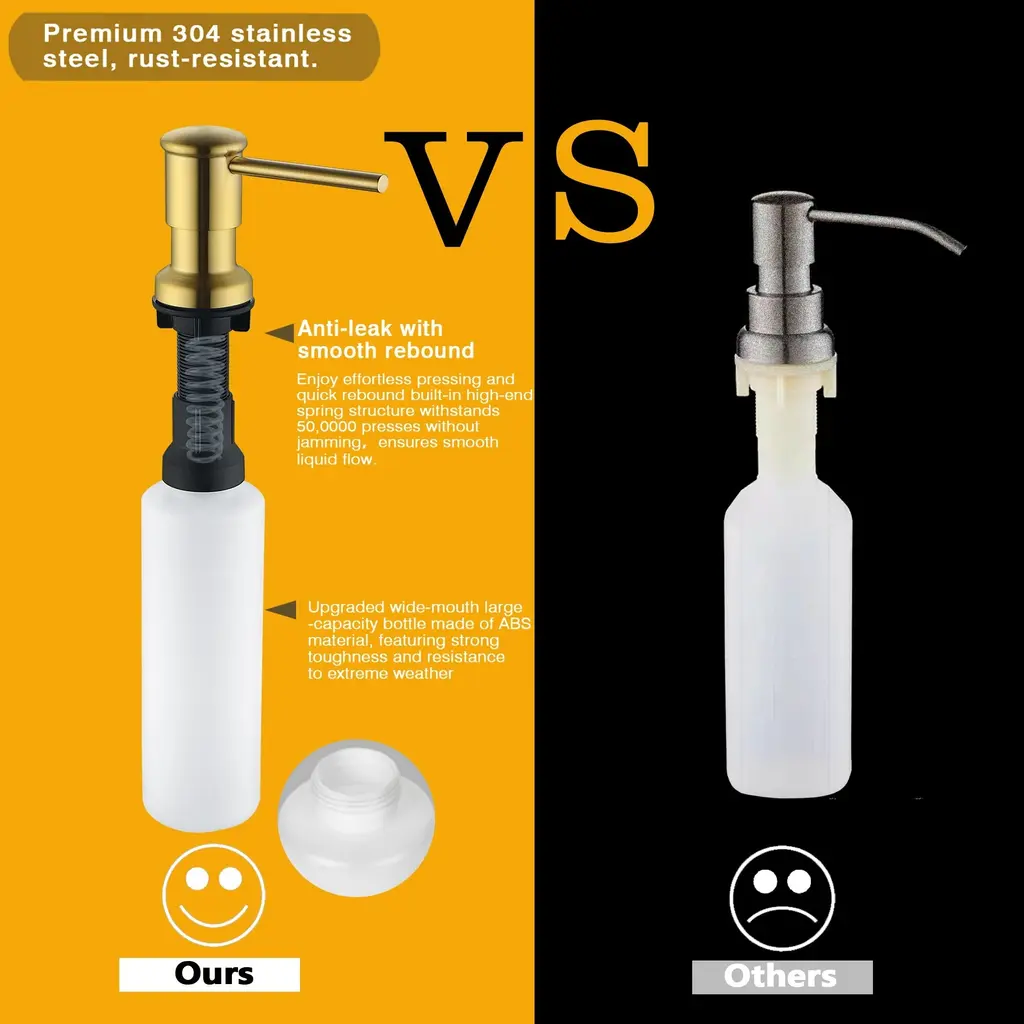This premium soap dispenser features a durable pump with a brushed nickel finish, offering smooth, leak-proof dispensing and lasting up to 50,000 presses. The reinforced ABS and PE plastic bottle is large-capacity and designed to withstand extreme temperatures without becoming brittle. Easy to install and maintain, it complements any kitchen or bathroom decor with its sleek, rust-resistant design.