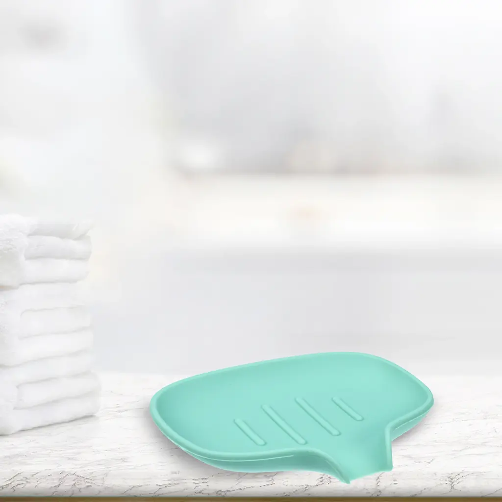 Soap Dish Keep Soap Dry For Home Bathroom Kitchen Silicone 14.5x11.3cm - Green