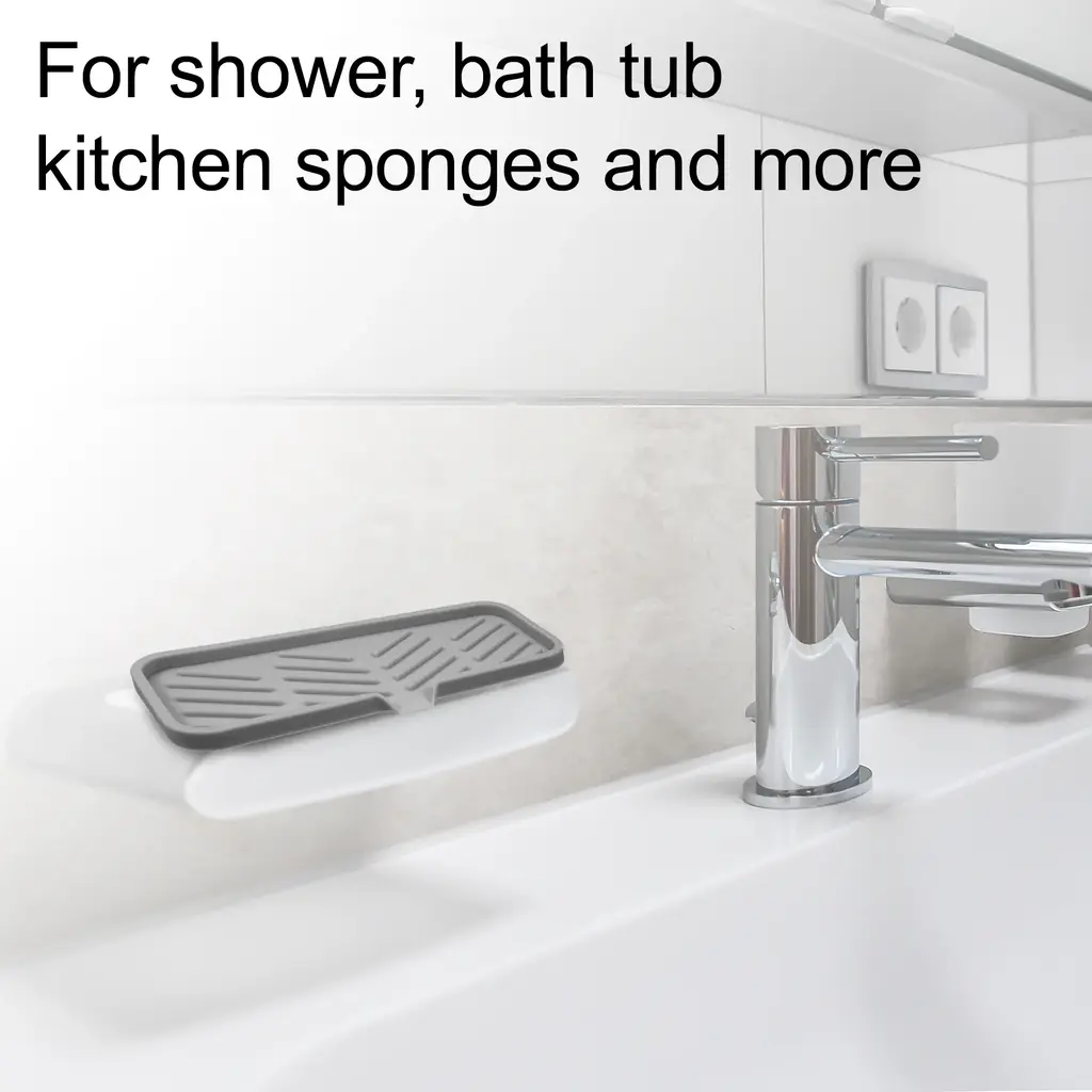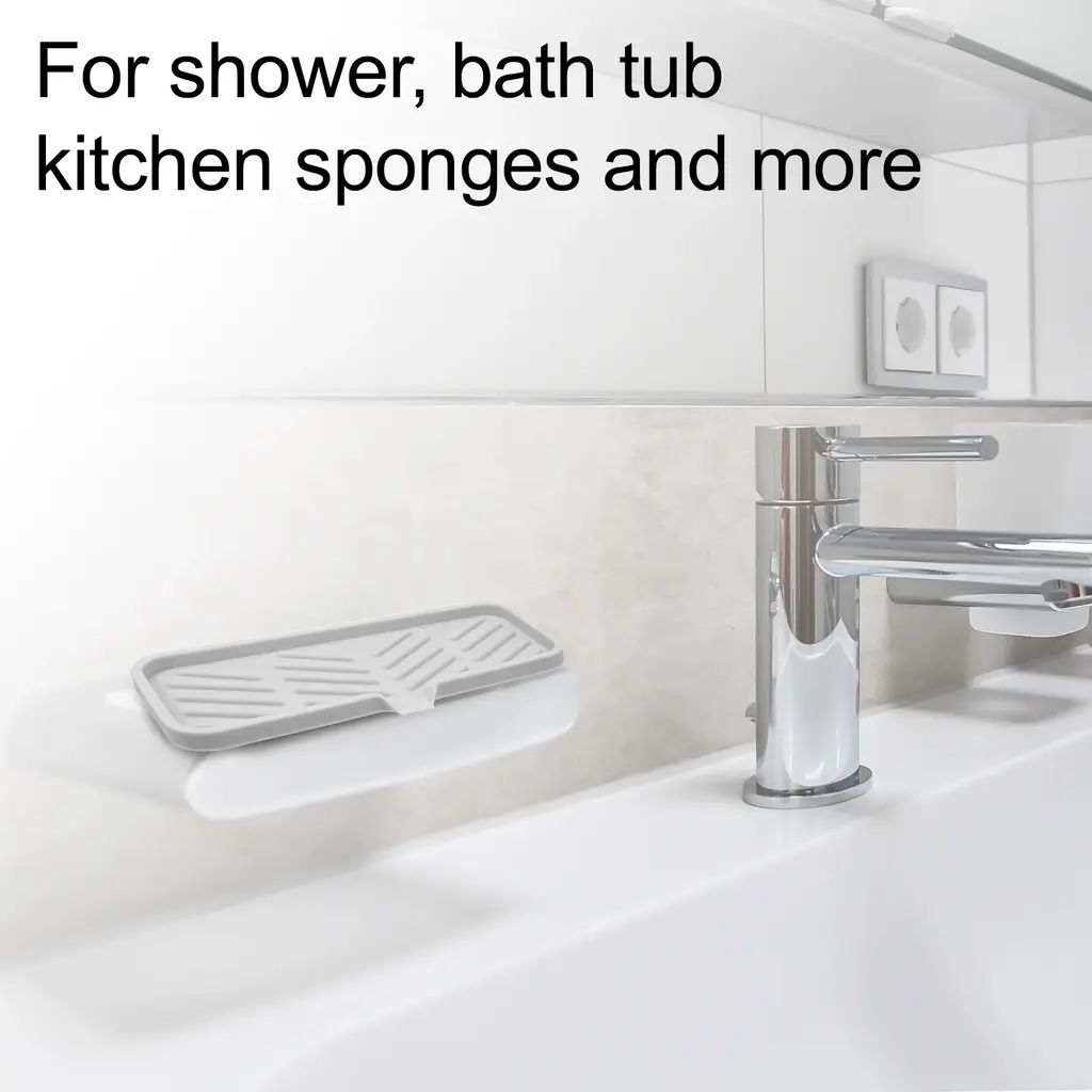 Soap Dish Keep Soap Dry For Home Bathroom Kitchen Silicone - Light Gray - 13.5x10.5cm