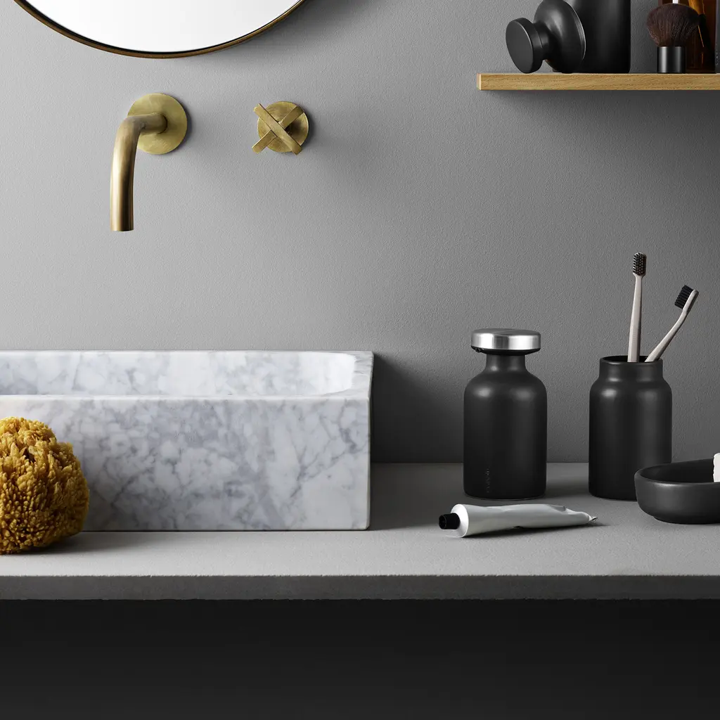 Smarten up your bathroom with the new functional and elegant soap dispenser from Eva Solo. With a stylish soap dispenser, you can buy your favourite soap in whatever packaging it comes in and still maintain a stylish look in the bathroom. The soap dispenser is easy to fill and clean. The container is made of matt black ceramic in a simple design that matches the other products in the Eva Solo bathroom series.