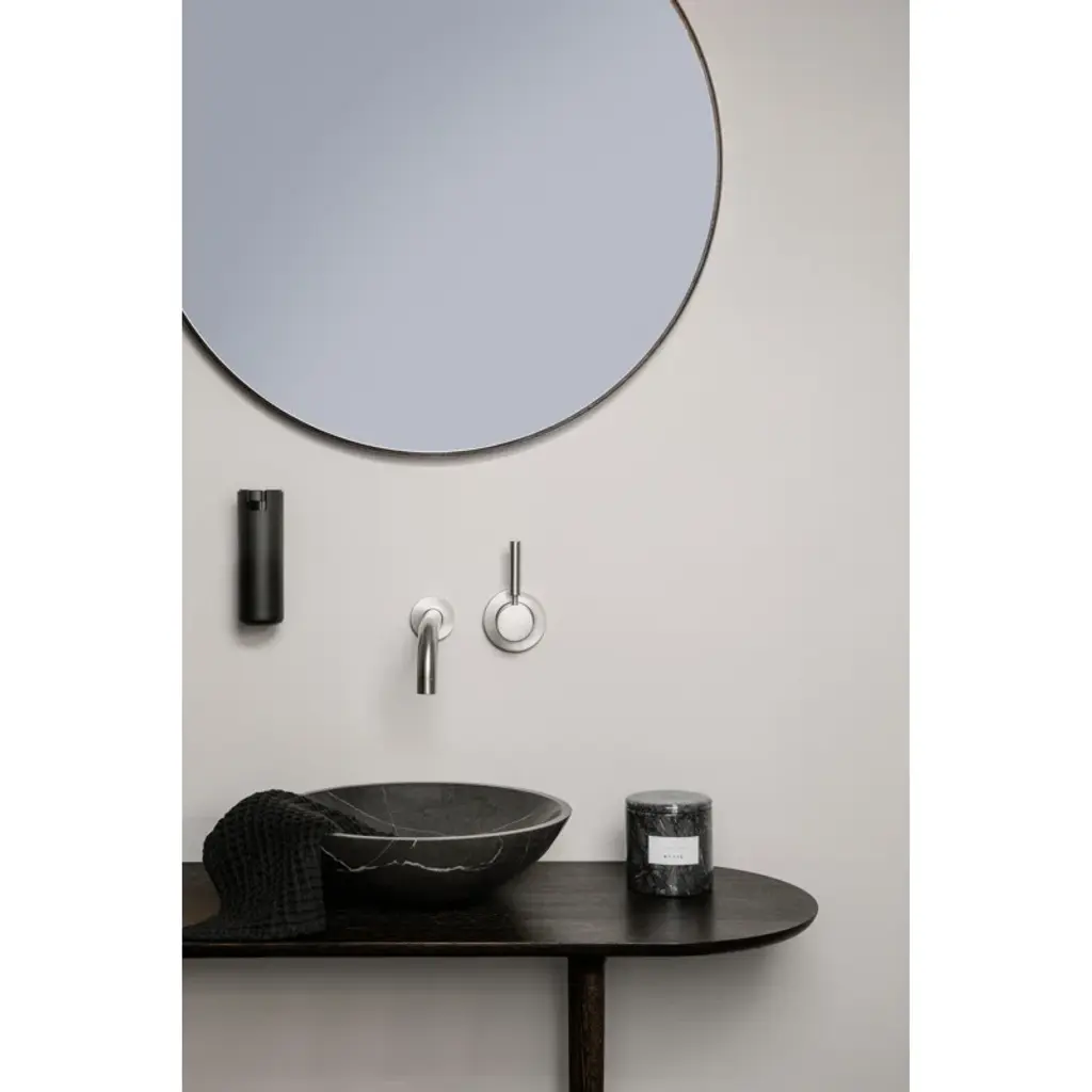 Wall Mounted Soap Dispenser - Modo brings elegant luxury to your bathroom or spa. The Blomus Modo line is made of titanium-coated steel for a sexy, masculine, functional design piece. The black or white titanium coating not only provides a pleasant feel but is also durable, corrosion-resistant, and scratch resistant. The Blomus Modo offers a variety of matching bath accessories in the same beautiful ti-coated finish. Designed by Flog Design in Germany. Available in Black or White.