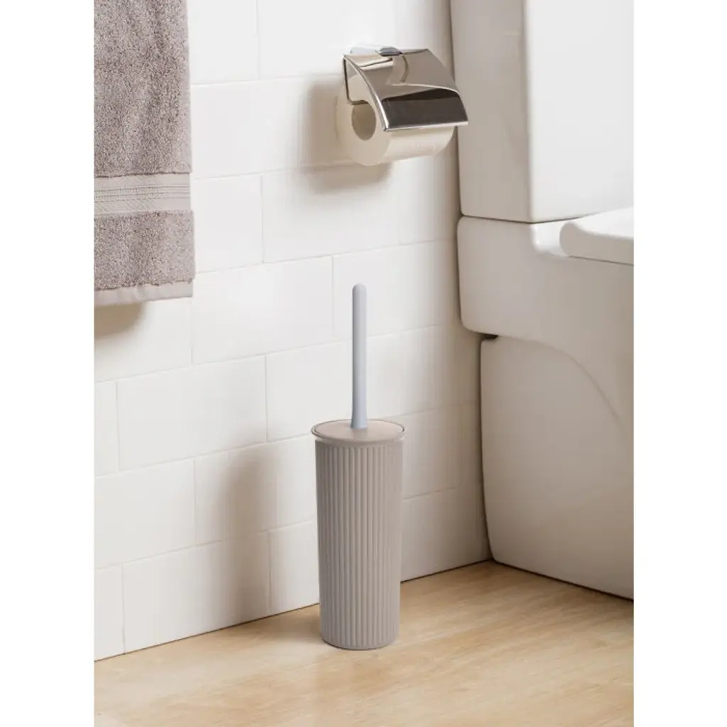 Without bending over, get under the toilet lip and scrub the bowl with Superior Toilet Bowl Cleaner. Our innovative and stylish toilet bowl brush provides the ultimate hygiene and power cleaning for your bathroom. The stiff bristles of our toilet brush take on dirt and grime with ease and leave your toilet sparkling clean. The brush also works great for cleaning sinks and tubs too! And when you're done, simply slide the brush into the decorative ribbed design holder to keep them neatly hidden from sight until you need them again. Features: Includes: One (1) Toilet Brush Matching Bathroom Set: Superior offers a complete set of matching bathroom accessories which include storage organizer bins, soap dishes, liquid soap dispensers, trash cans, and much more. Shop now at Superior and achieve that chic and modern design bathroom. Premium Quality: This toilet bowl brush is made of quality BPA-free polypropylene material combined with flexibility which makes it durable, flexible, and able to keep up under the toughest circumstances. Powerful Cleaning: Sweep away toilet bowl grime with this durable toilet bowl brush. The stiff bristles of the brush can easily target stubborn dirt and grime, helping to keep your toilet sparkling clean. The handle design also makes it comfortable to hold, and easily reaches the corners of your toilet bowl. RIBBED DESIGN This Ribbed Toilet Brush is perfect for cleaning and polishing the bowl, this stylish bathroom accessory will add a touch of elegance to your decor. Made of high-quality material, it can be used for a long time. It features a durable handle with an easy grip and sturdy but gentle bristles. Sturdy Storage Caddy: The toilet bowl brush comes with a sturdy storage caddy that fits easily on your bathroom counter or wall. This ribbed brush cleaner and holder is discreetly organized and out of view, so your bathroom will always look neat, clean, and ready for guests. Made in Spain Dimensions: Dimensions: 15 inches high x 6 inches wide x 5 inches deep Weight: 0.5 lbs This product will be shipped to you in one (1) box.
