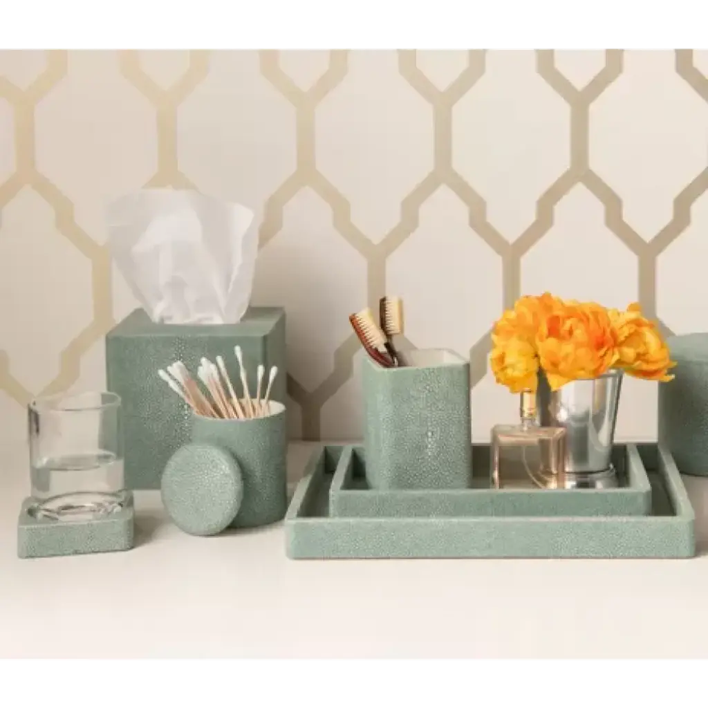 Stunning bath collection in our signature faux shagreen with an elevated rounded corner detail. Appropriate for the most discriminating bathrooms. The designers at Pigeon & Poodle believe the details of a home are just as important as the furniture. A gorgeous toothbrush holder or handcrafted canister can elevate an entire bath, the perfect frame can heighten the feel of a whole space, and a good-looking storage basket can be your look’s missing link. With thoughtful design and top-notch craftsmanship, Pigeon & Poodle create home accessories with the care and attention typically reserved for larger pieces of décor.