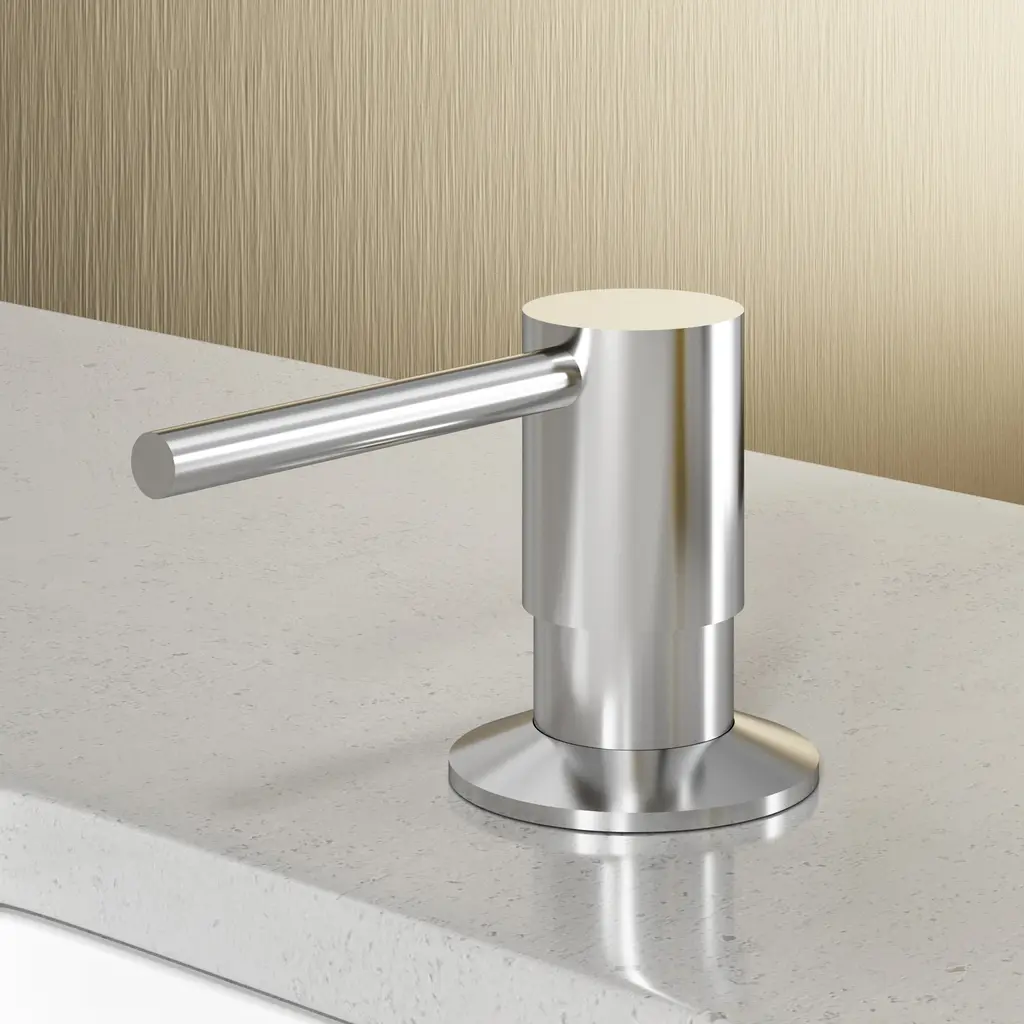Ergonomically designed, The Bolton by VIGO is a user-friendly soap dispenser that coordinates with any kitchen faucet. Whether your faucet style is modern or traditional, The Bolton ensures a coordinated look and makes washing more convenient with your liquid soap nearby. A premium chrome finish delivers a lifetime of brilliance and resists spots. For added convenience, you can refill the large reservoir from above the counter. The airtight suction and seal feature makes it easy to fill the dispenser with soap, lotion or detergent. Assembling this kitchen accessory over your kitchen counter next to your kitchen faucet is quick with a few simple steps. Experience the difference with more counter space and a cleaner look for your kitchen with this sleek soap dispenser.Features: