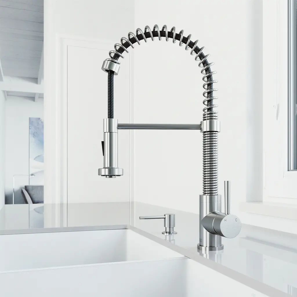 Ergonomically designed, The Bolton by VIGO is a user-friendly soap dispenser that coordinates with any kitchen faucet. Whether your faucet style is modern or traditional, The Bolton ensures a coordinated look and makes washing more convenient with your liquid soap nearby. A premium chrome finish delivers a lifetime of brilliance and resists spots. For added convenience, you can refill the large reservoir from above the counter. The airtight suction and seal feature makes it easy to fill the dispenser with soap, lotion or detergent. Assembling this kitchen accessory over your kitchen counter next to your kitchen faucet is quick with a few simple steps. Experience the difference with more counter space and a cleaner look for your kitchen with this sleek soap dispenser.Features: