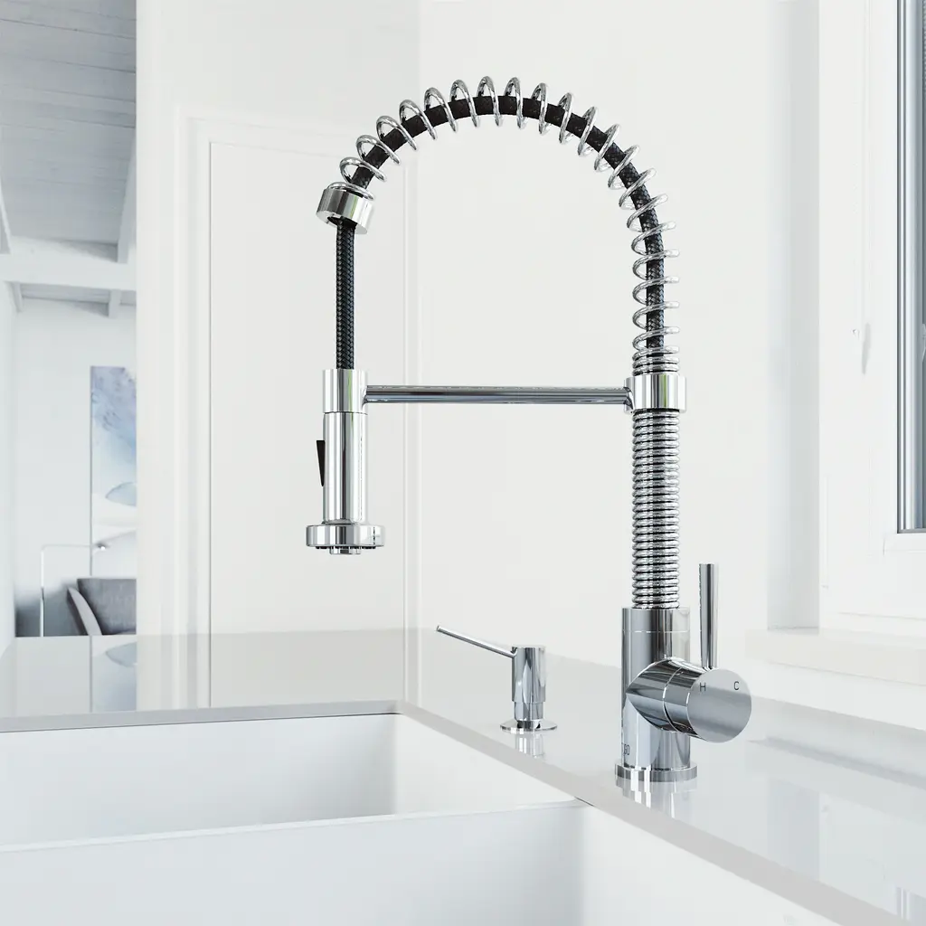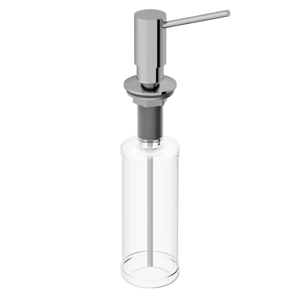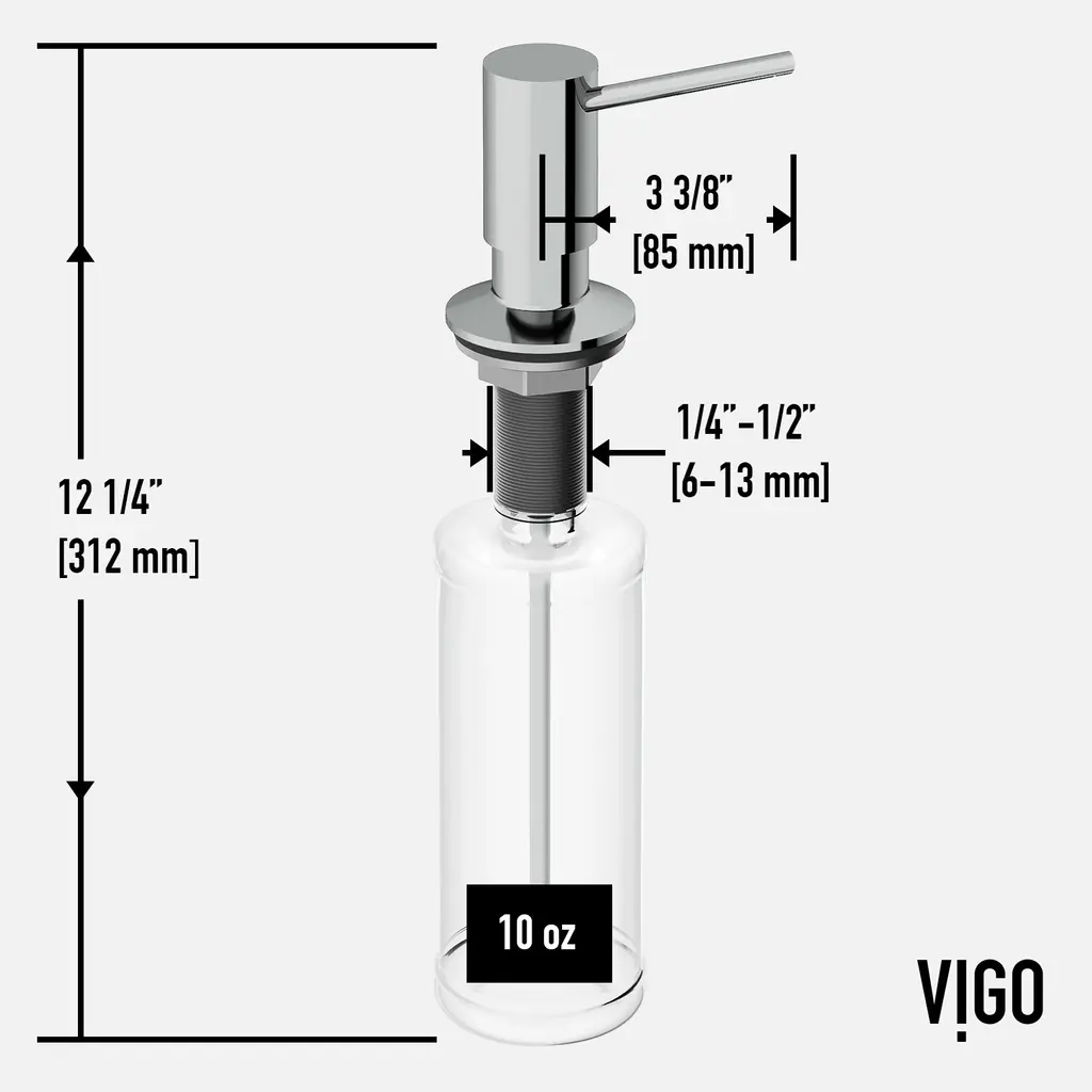 Sleek and ergonomic, The Braddock by VIGO is a clean and easy to use soap dispenser that makes cleaning more convenient. Its versatile design and straight angled nozzle coordinate with any kitchen faucet, whether modern or traditional. A premium chrome finish with a 7-layer coating delivers a lifetime of brilliance. For added convenience, refilling the large reservoir with soap, lotion or detergent from above countertops is effortless with innovative technology features. Assembling this must-have kitchen accessory over your kitchen counter next to your kitchen faucet with an under-mount reservoir bottle is easy with just a few simple steps. Discover the difference with more counter space, and a cleaner look for your kitchen.Features: