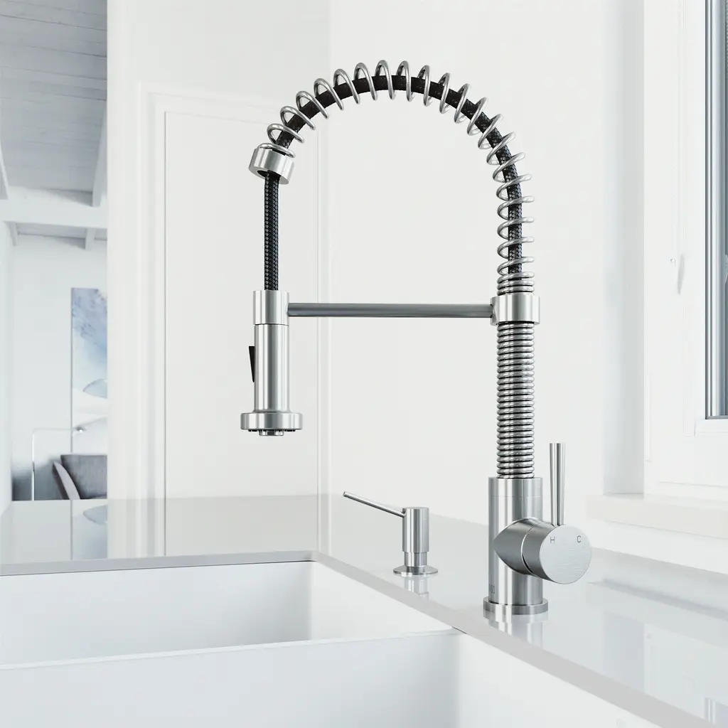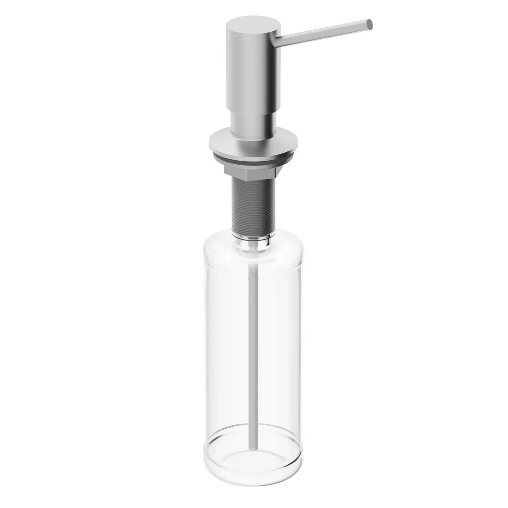 Sleek and ergonomic, The Braddock by VIGO is a clean and easy to use soap dispenser that makes cleaning more convenient. Its versatile design and straight angled nozzle coordinate with any kitchen faucet, whether modern or traditional. A premium chrome finish with a 7-layer coating delivers a lifetime of brilliance. For added convenience, refilling the large reservoir with soap, lotion or detergent from above countertops is effortless with innovative technology features. Assembling this must-have kitchen accessory over your kitchen counter next to your kitchen faucet with an under-mount reservoir bottle is easy with just a few simple steps. Discover the difference with more counter space, and a cleaner look for your kitchen.Features: