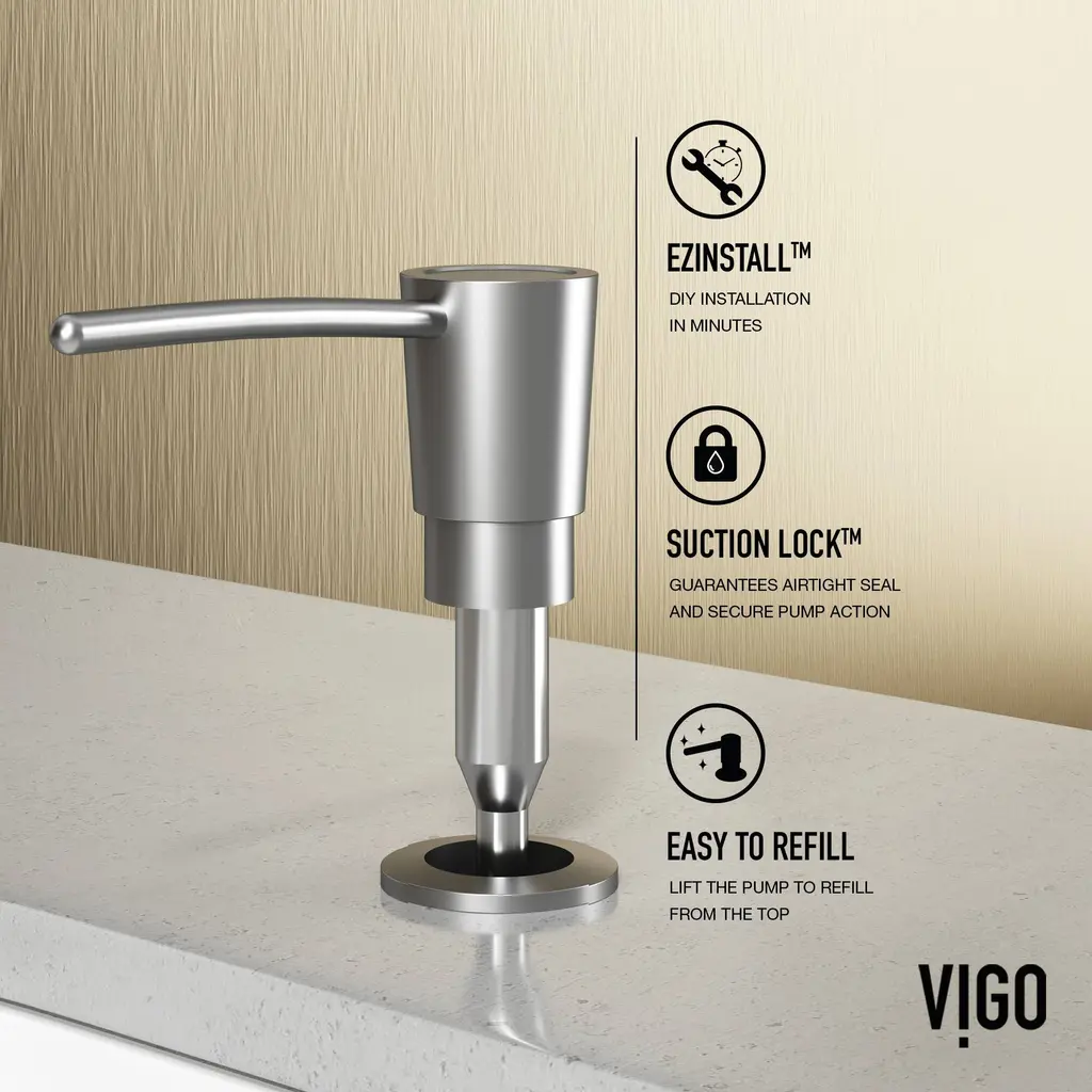 Add a sophisticated touch to your modern kitchen upgrade with the VIGO kitchen soap dispenser. Designed for mounting with a pump above the counter and a reservoir below, which can easily be refilled from the top for added convenience. Works great with hand soap, dish soap, or hand lotion for your household needs.